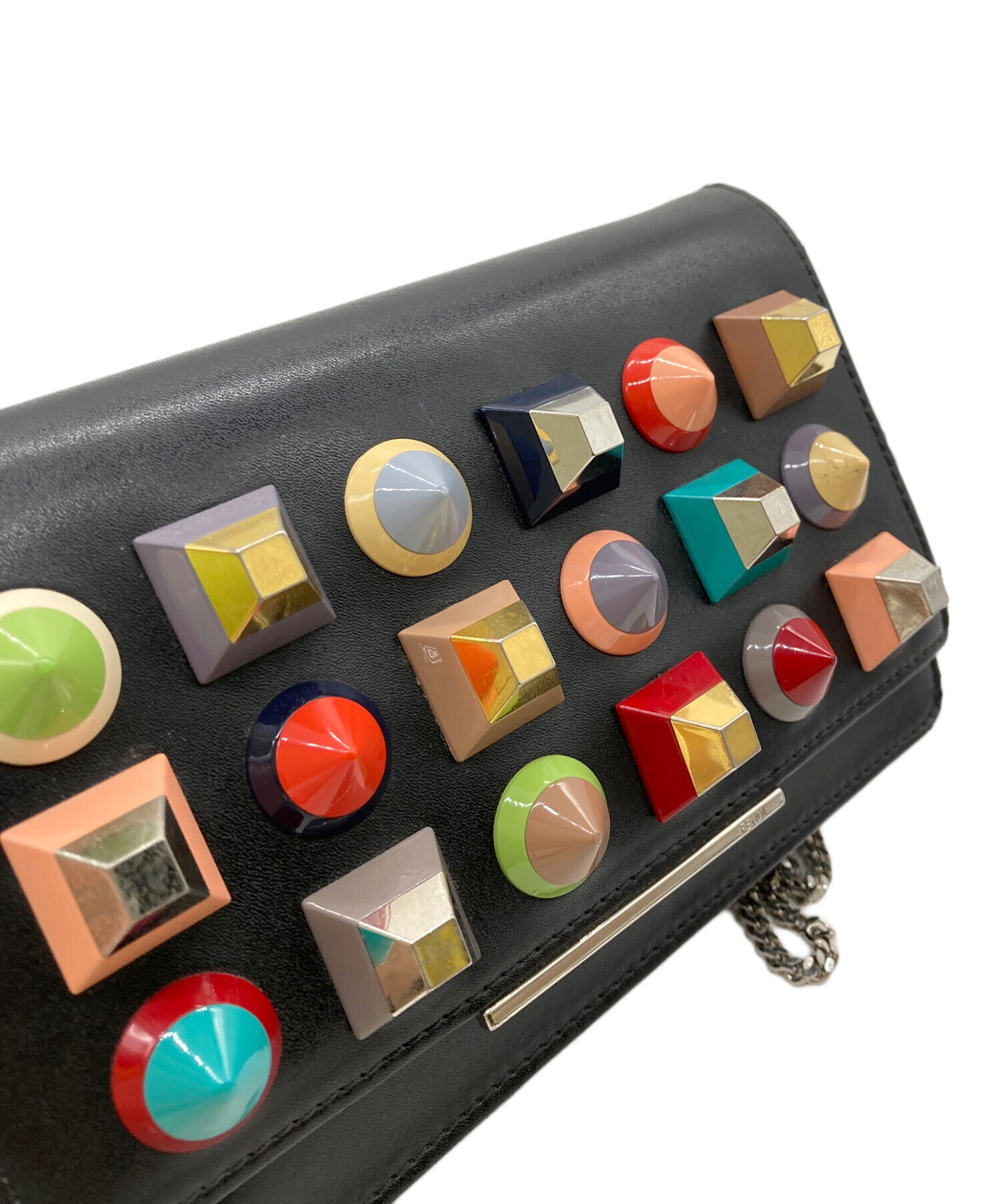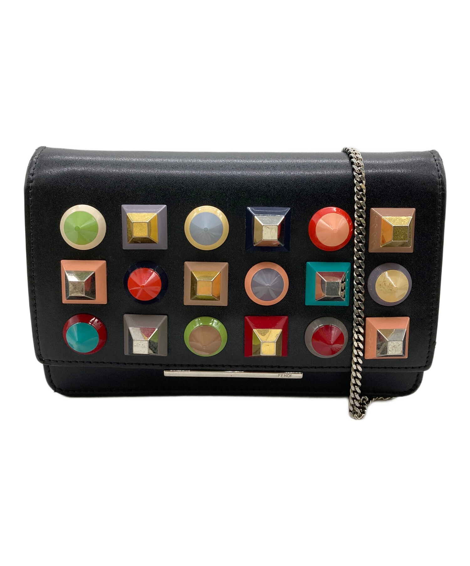 • FENDI(フェンディ)FENDI (フェンディ) マルチスタッズチェーンウォレットバッグ ブラックの古着・服飾アイテム 金具部分スレ・ヨゴレ