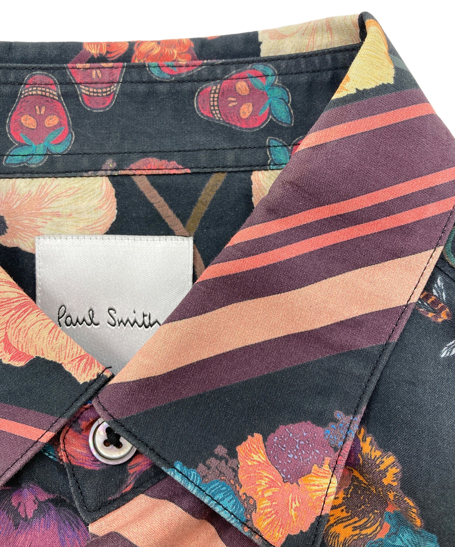 • PAUL SMITH(ポールスミス)Paul Smith (ポールスミス) “VINTAGE SCARF” PRINT SHIRTS パープル サイズ:Mの古着・服飾アイテム 襟ヨゴレ・スレ