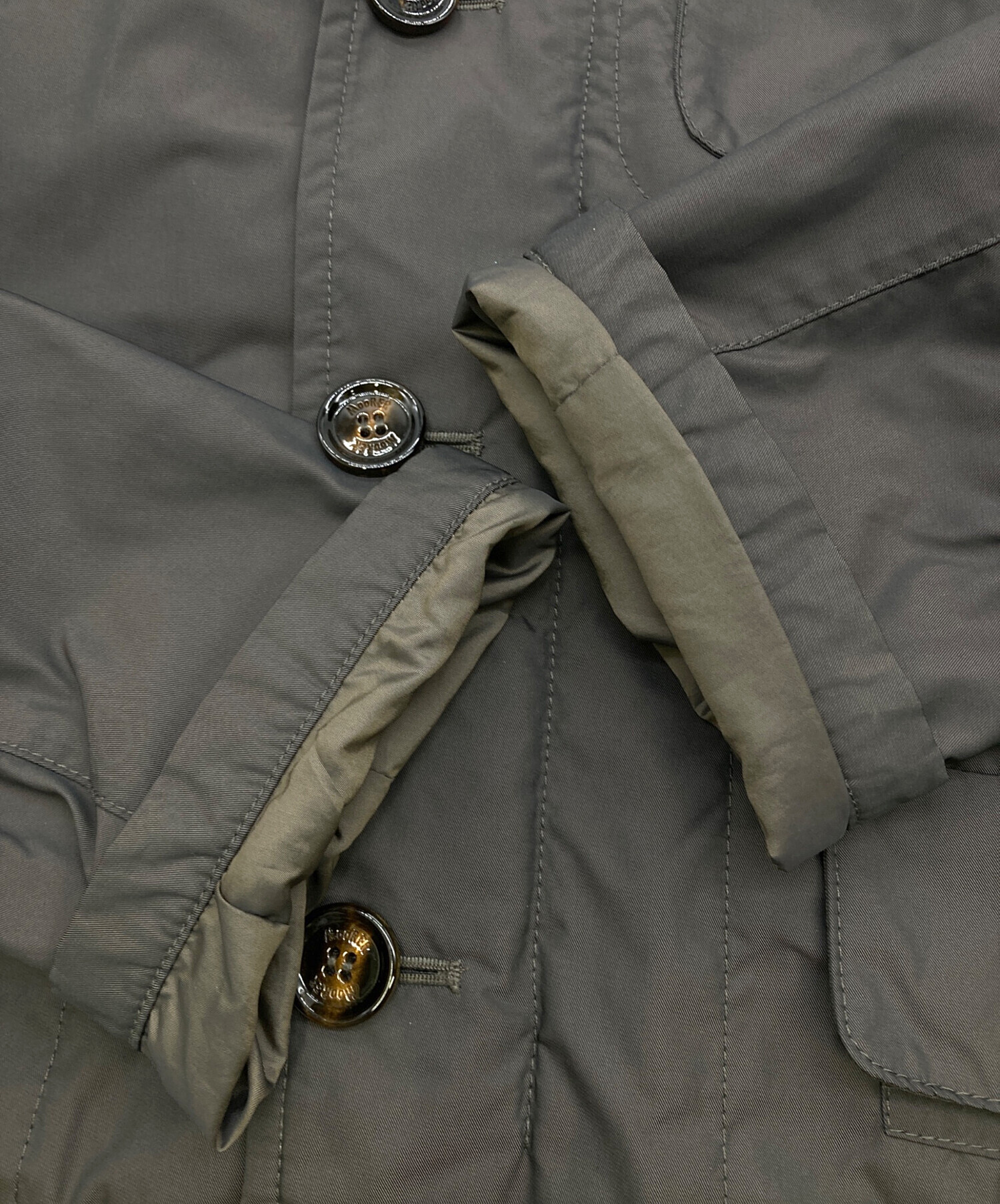 目立つシミや汚れ、におい等がある場合は商品画像や説明文にて極力表記させていただいておりますが、中古品という商品の特性上、全ての瑕疵や不備、洋服直し箇所を撮影・記載をすることは難しくなっております。また、ほとんどのアイテムは店頭と併売しておりますため、出品掲載時からコンディションが変動している場合もございます。あらかじめご了承くださいませ。