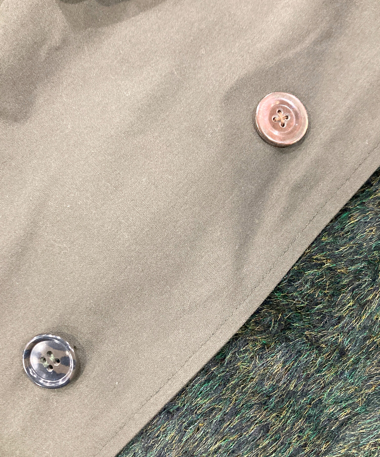 目立つシミや汚れ、におい等がある場合は商品画像や説明文にて極力表記させていただいておりますが、中古品という商品の特性上、全ての瑕疵や不備、洋服直し箇所を撮影・記載をすることは難しくなっております。また、ほとんどのアイテムは店頭と併売しておりますため、出品掲載時からコンディションが変動している場合もございます。あらかじめご了承くださいませ。