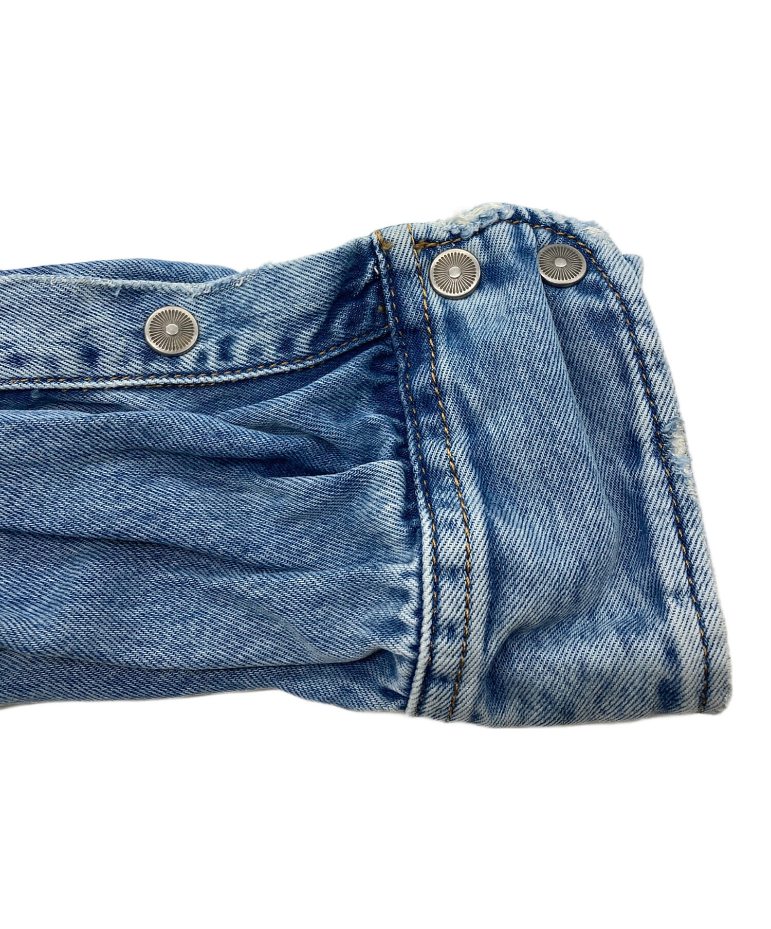 | 状態 | こちらの商品はあまり使用感の感じられない商品ですが、着用に伴う細かな傷、ヨゴレ、店頭にて展示販売を行っている為、記載に無い細かなキズ、汚れが見受けられる場合がございます。 こちらの商品はダメージ加工が施されている商品となっております。 |