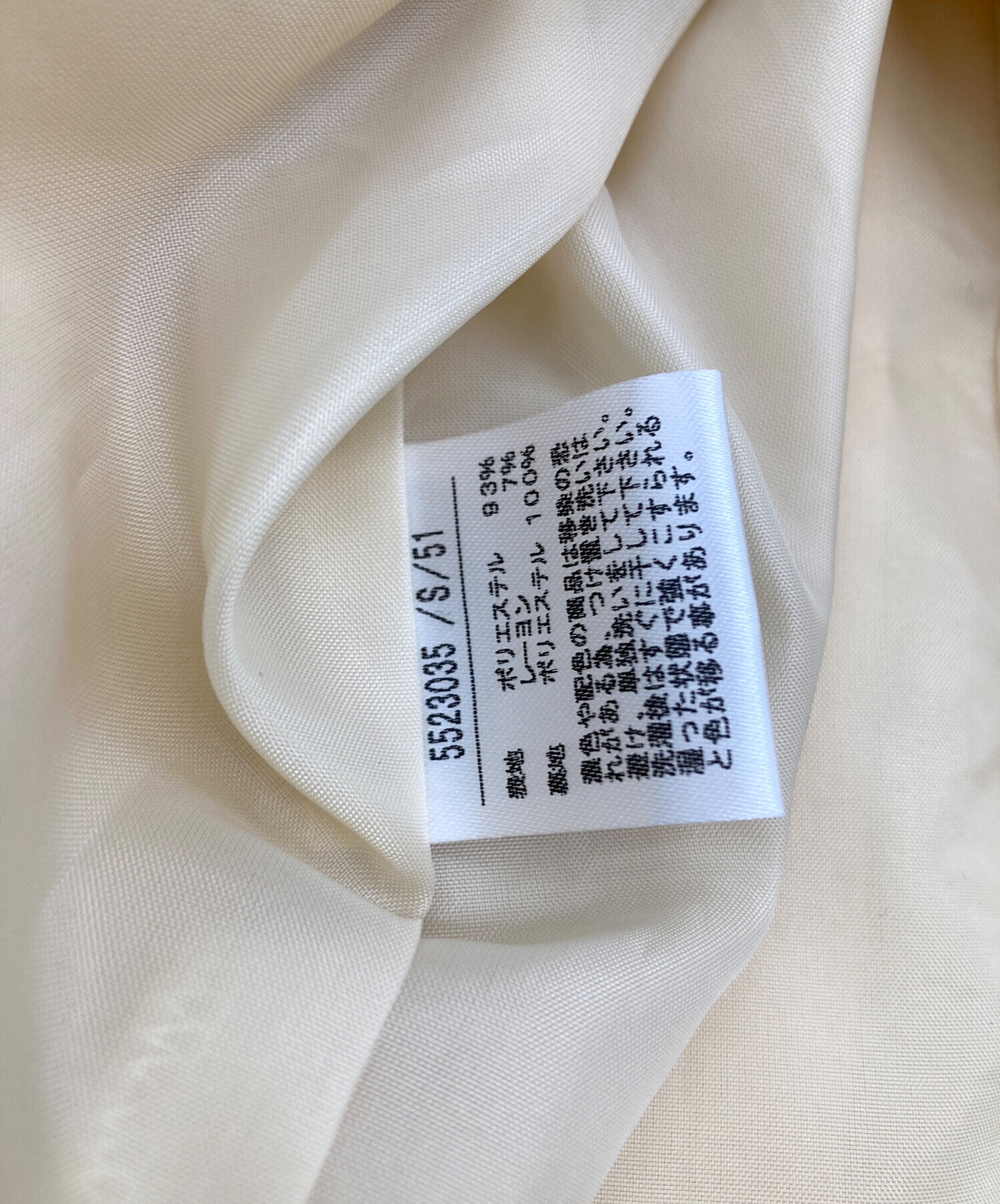 | 素材 | 表地: ポリエステル 93% レーヨン 7% 裏地: ポリエステル 100% |