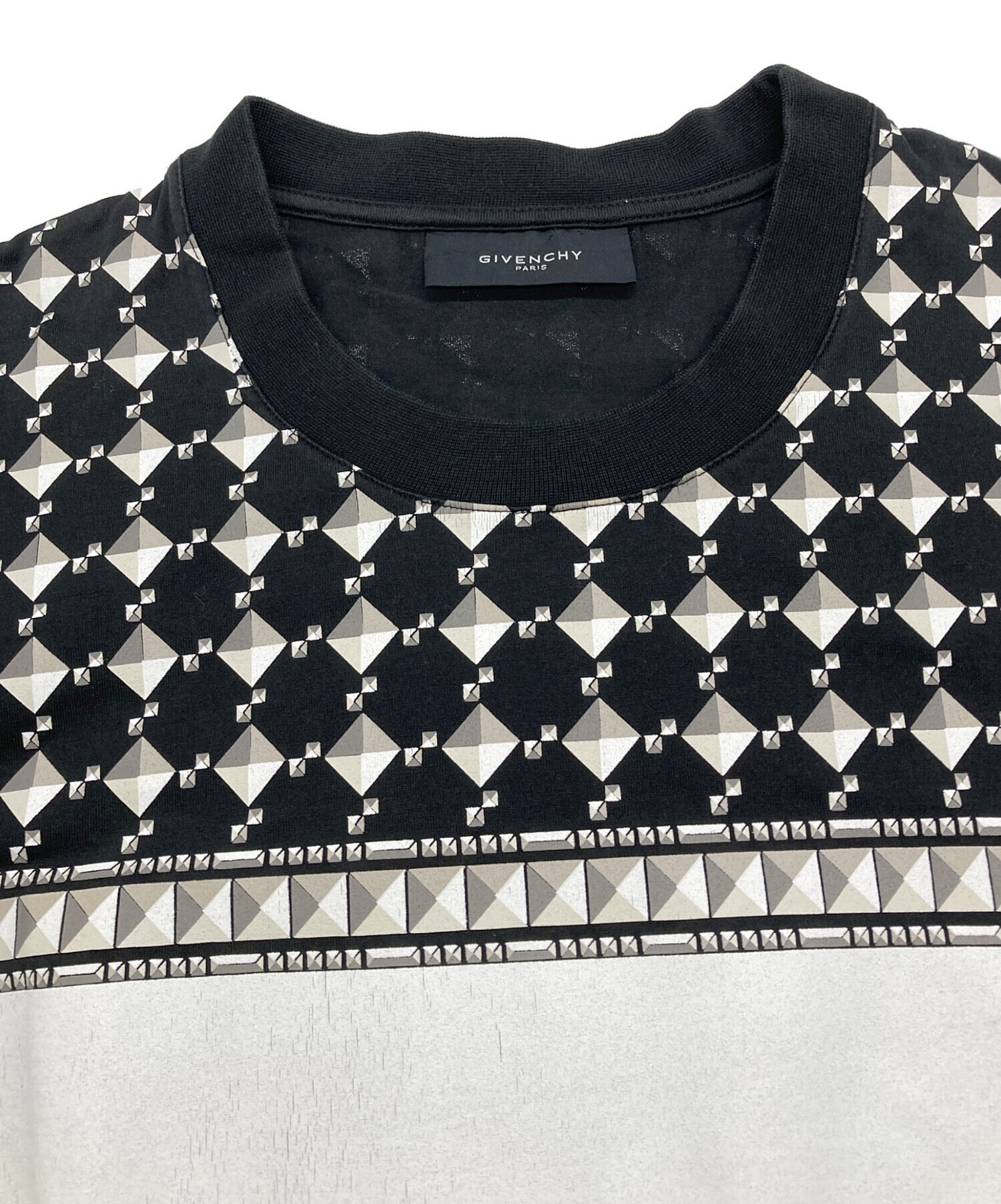 • GIVENCHY(ジバンシィ)GIVENCHY (ジバンシィ) スタッズプリントTシャツ ブラック サイズ:Mの古着・服飾アイテム 襟背面汚れ