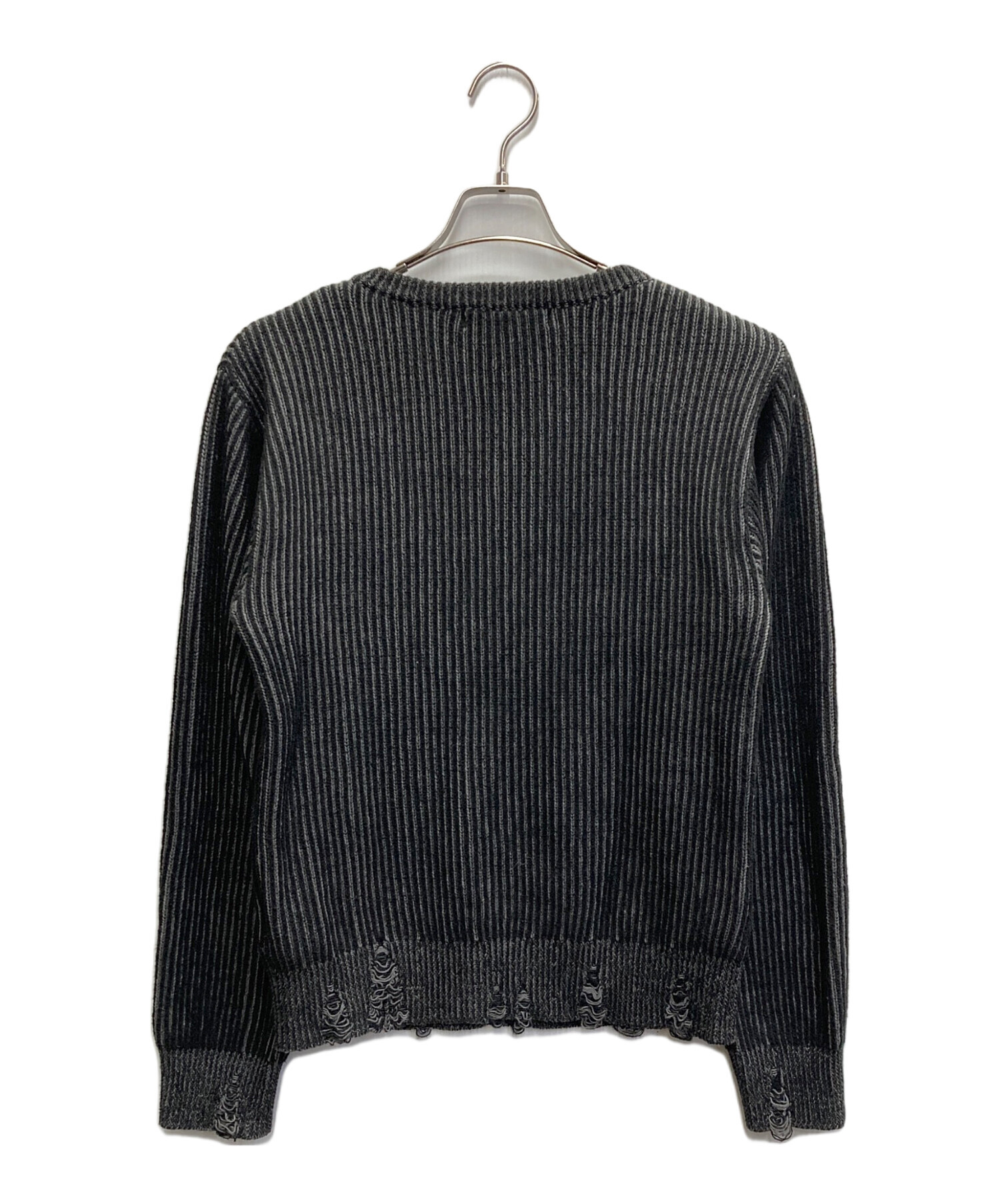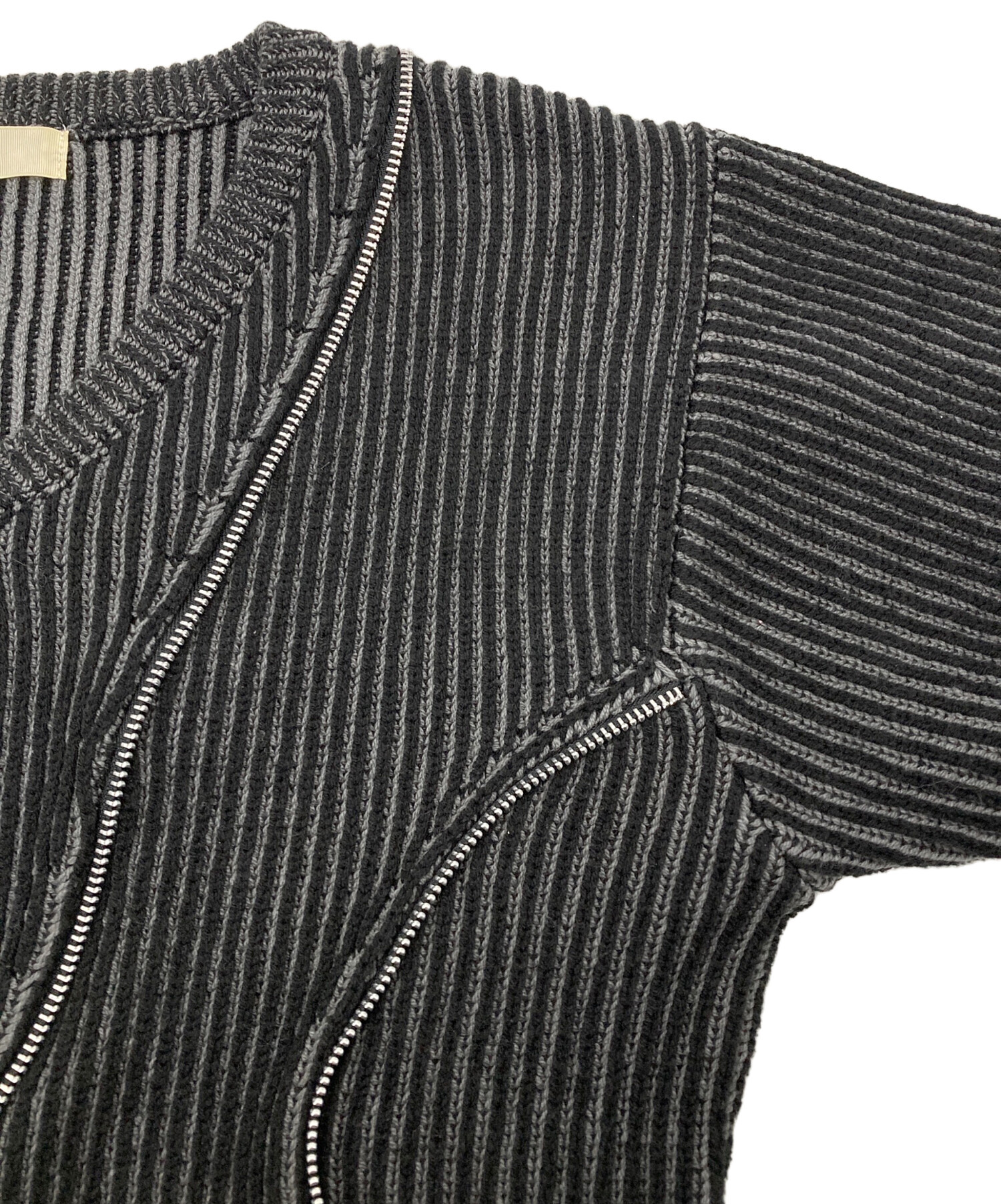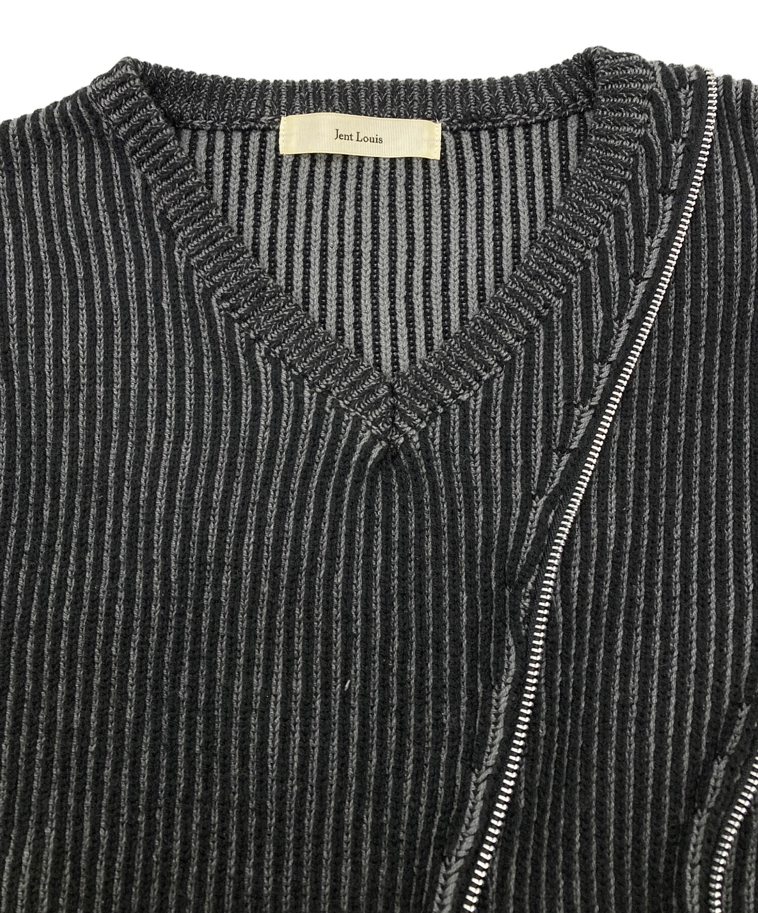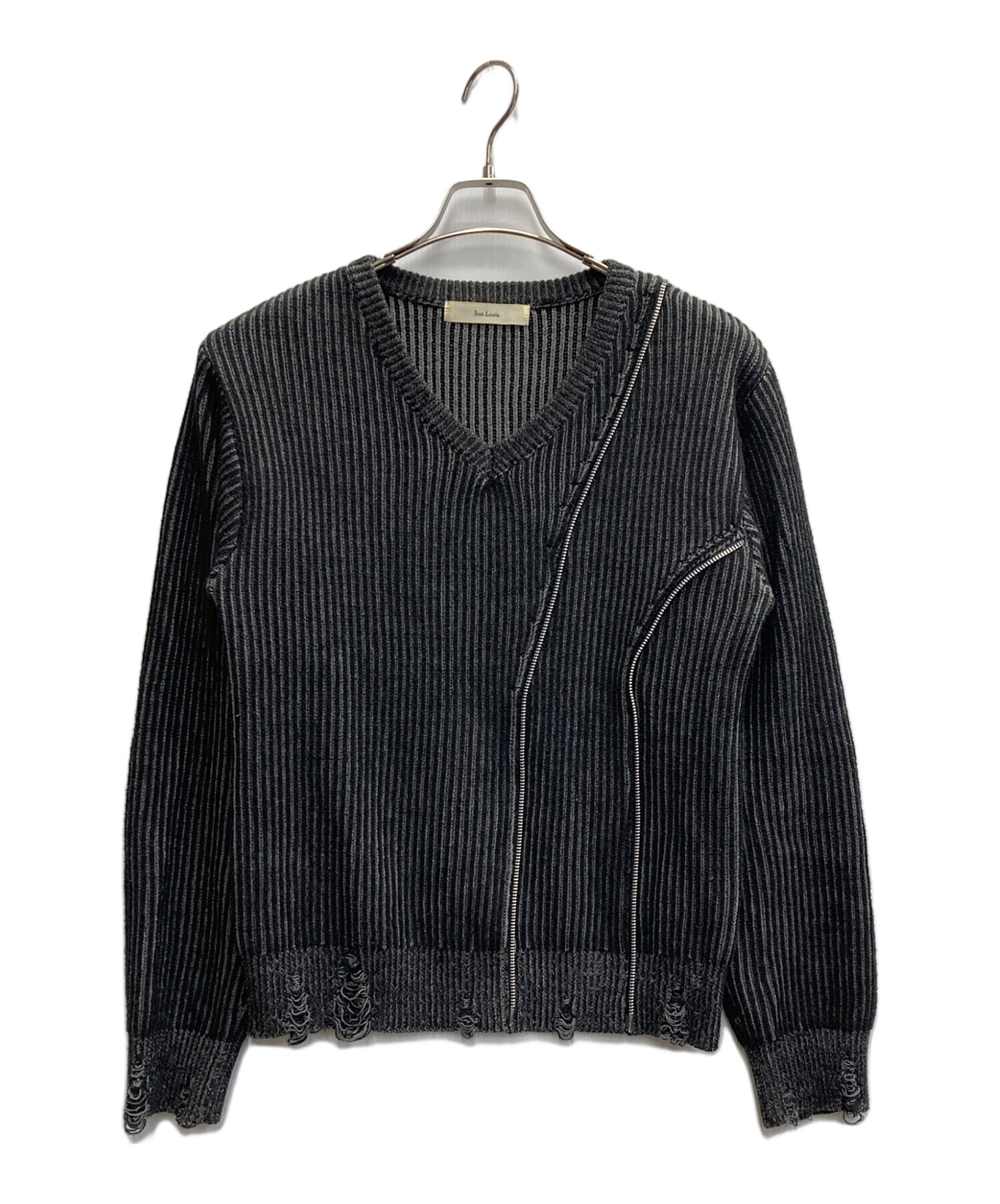 • jent louis(ジェントルイス)jent louis (ジェントルイス) Zip V-neck Knit Tops グレー サイズ:Jの古着・服飾アイテム ダメージ加工