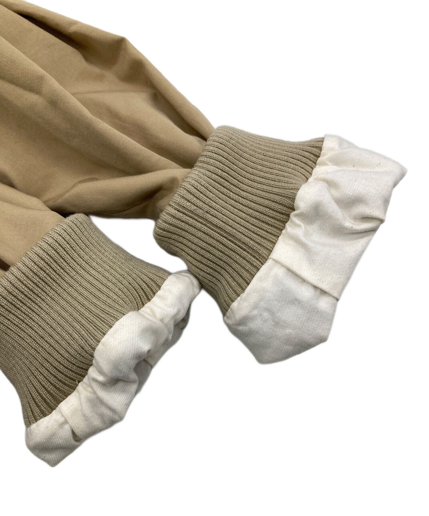 | 素材 | 表生地: レーヨン 49%、コットン 30%、キュプラ 21% 裏生地: コットン 100% リブ部分: アクリル 56%、毛 24%、ナイロン 16%、ポリウレタン 4% |