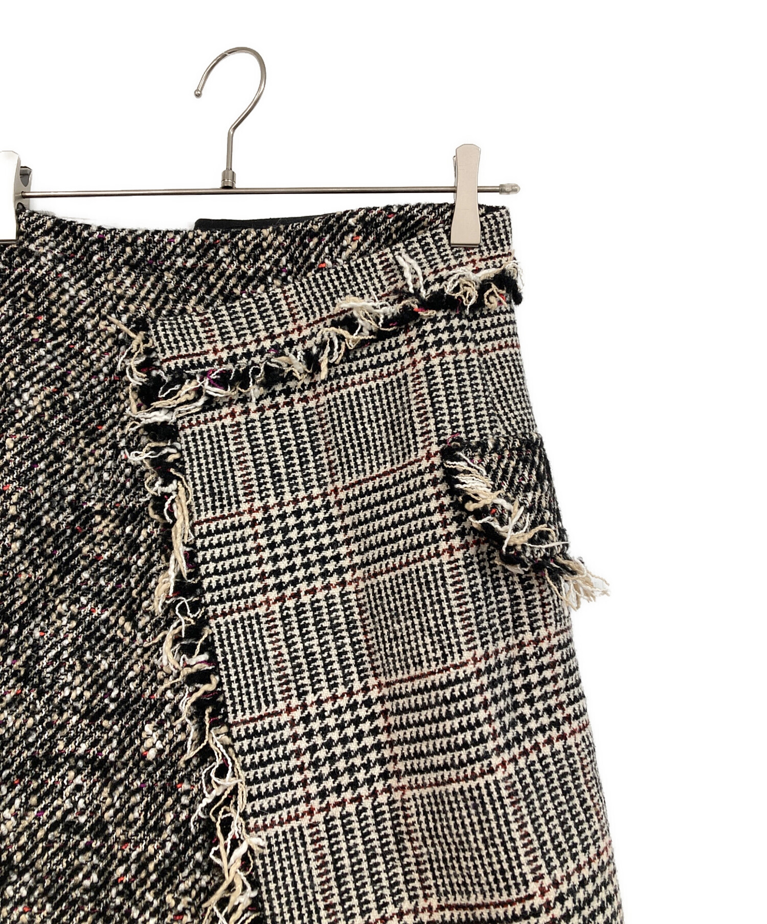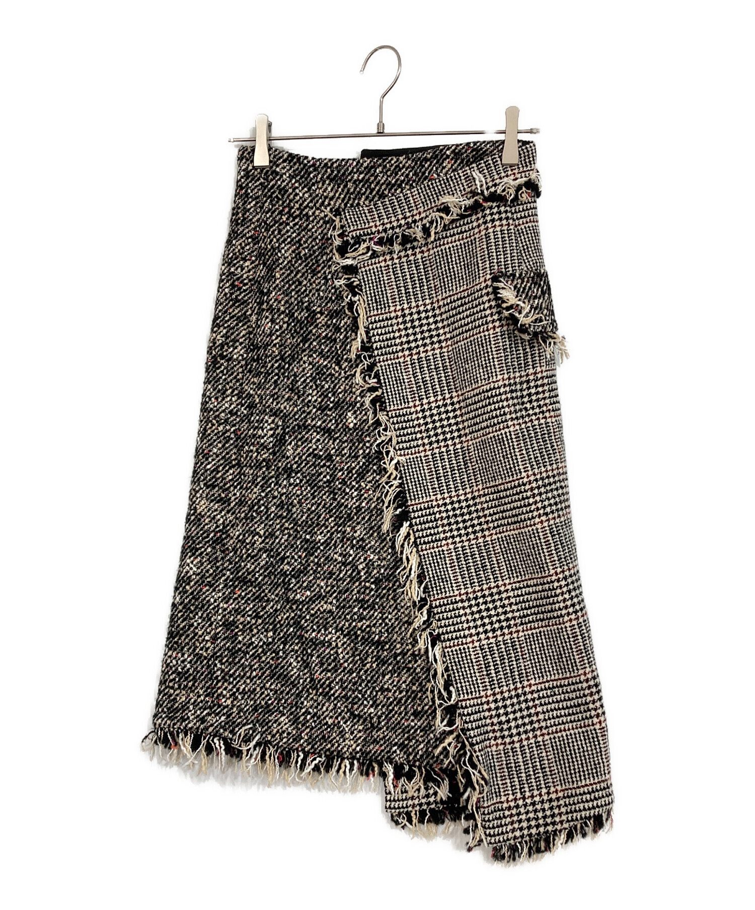 アシンメトリー ツイード フリンジ タイトスカート
