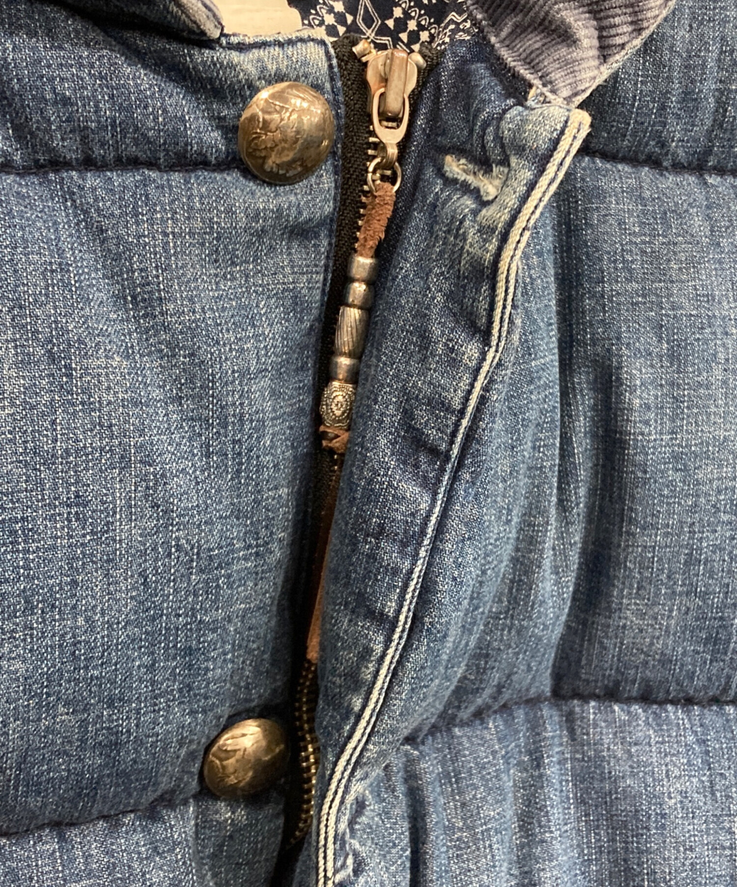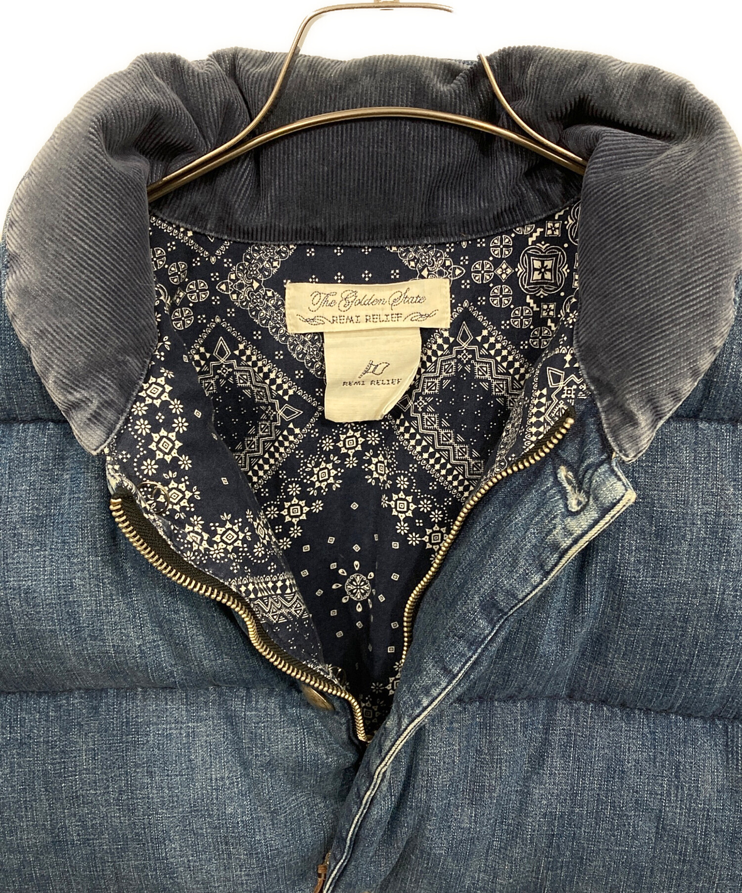 • REMI RELIEF(レミレリーフ)REMI RELIEF (レミレリーフ) コンチョボタンダウンジャケット インディゴ サイズ:Lの古着・服飾アイテム 金具スレ・変色