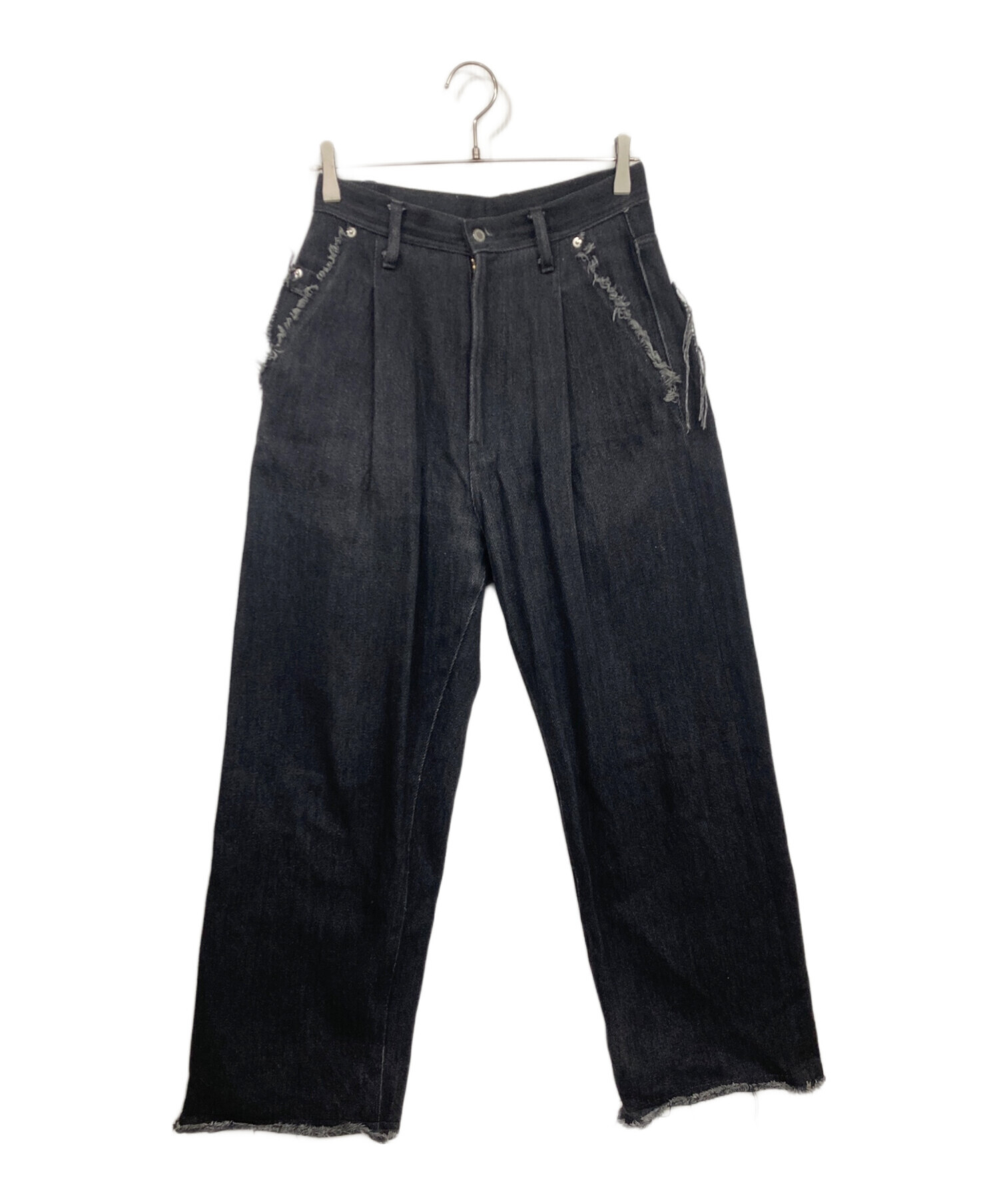 • APOCRYPHA.(アポクリファ)APOCRYPHA. (アポクリファ) LOOSE DENIM WIDE PANTS ブラック サイズ:1の古着・服飾アイテム ホツレ加工