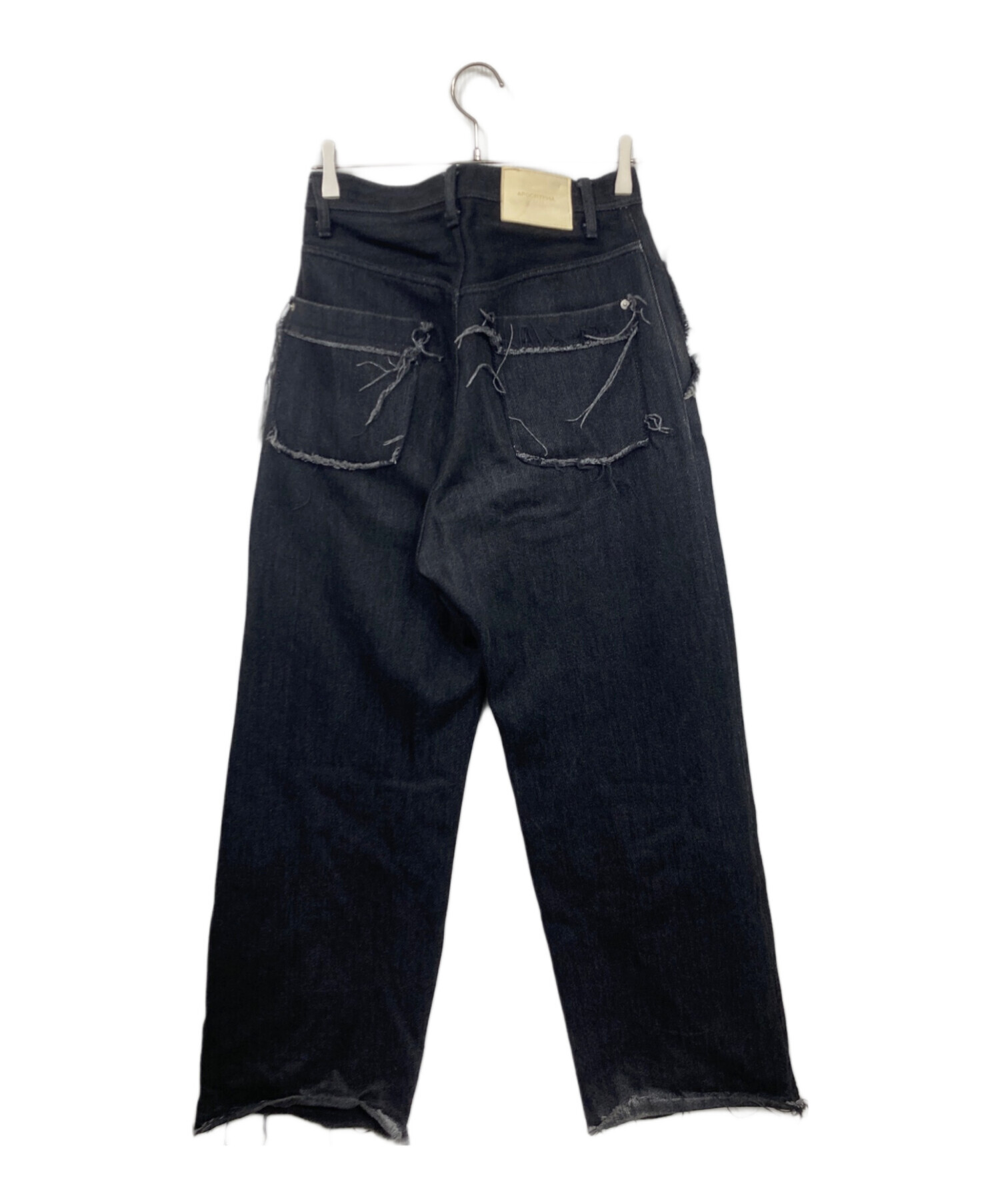 • APOCRYPHA.(アポクリファ)APOCRYPHA. (アポクリファ) LOOSE DENIM WIDE PANTS ブラック サイズ:1の古着・服飾アイテム ホツレ加工・パッチにハンガー跡