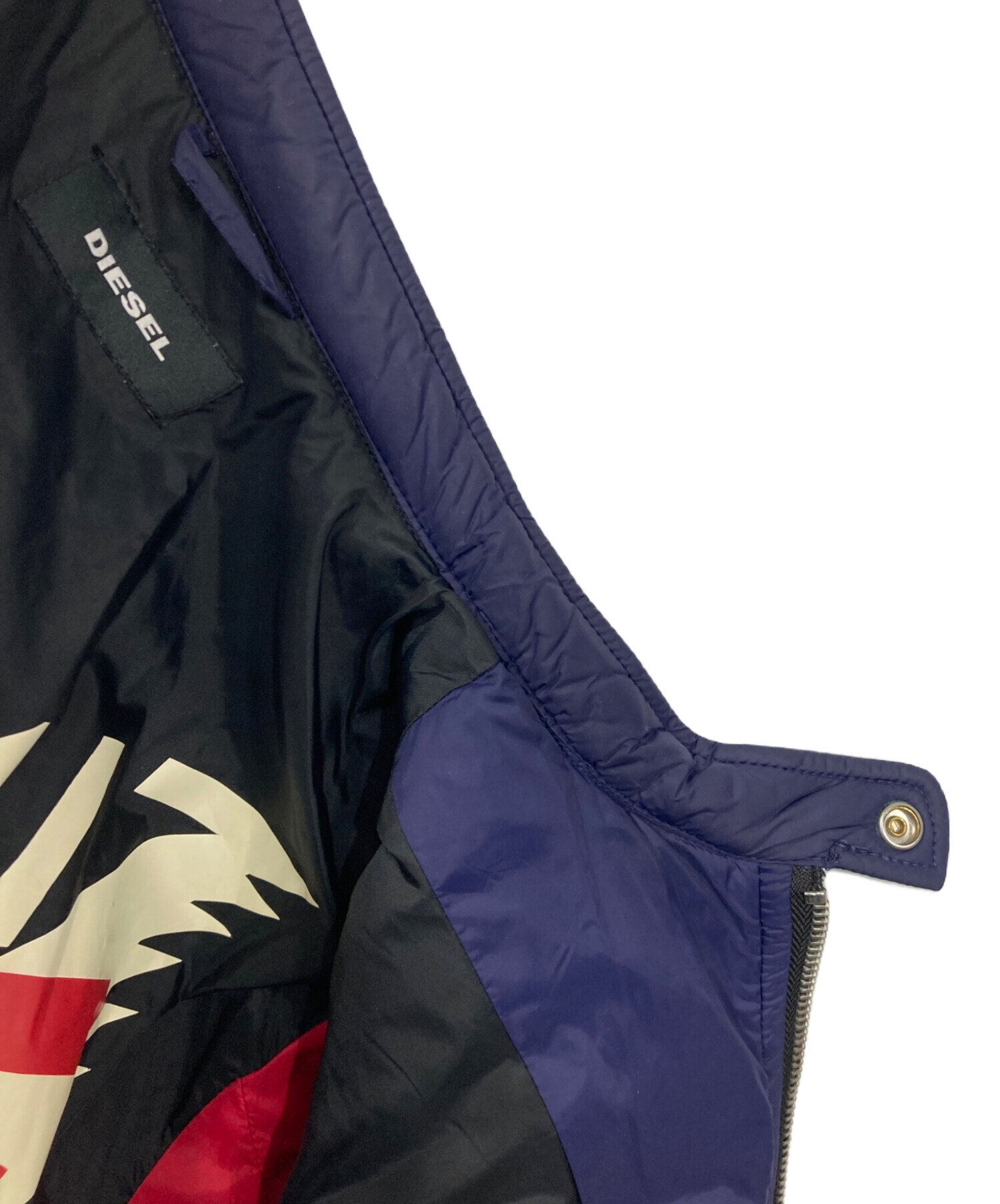 • DIESEL(ディーゼル)DIESEL (ディーゼル) シングルライダー中綿ジャケット ブルー サイズ:Lの古着・服飾アイテム 内部プリント劣化