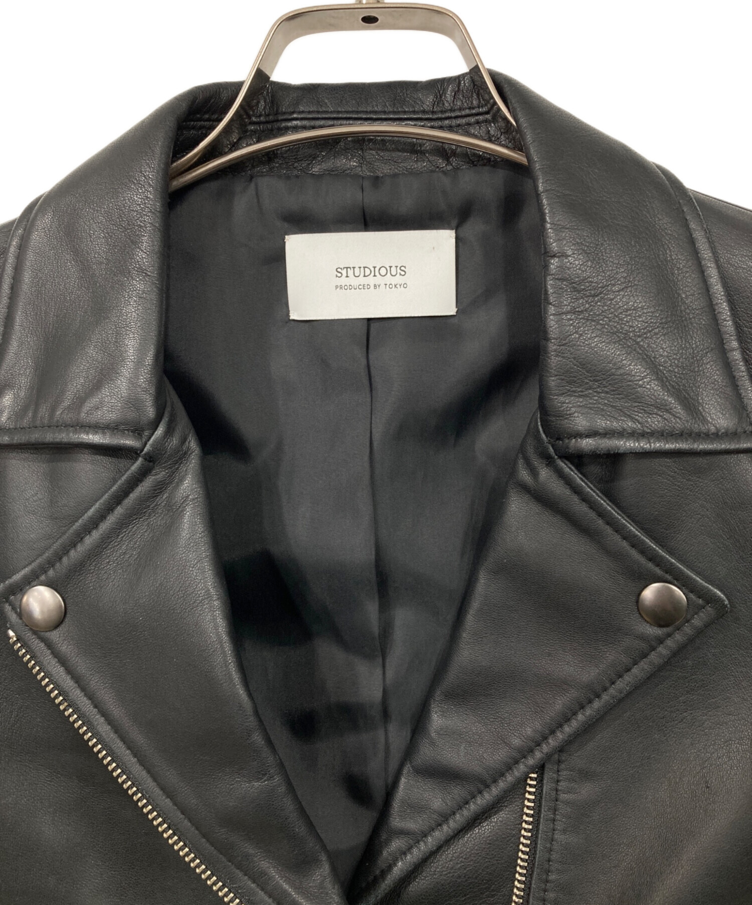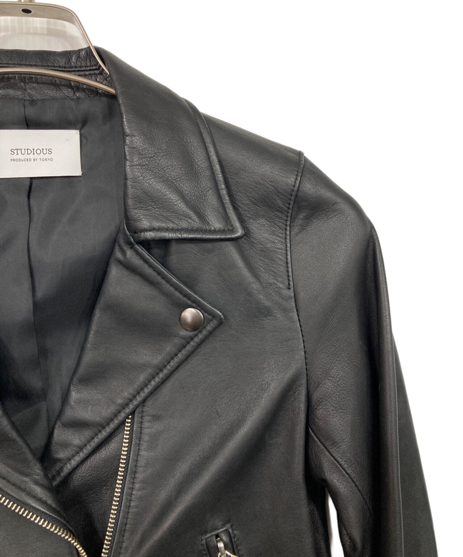 • STUDIOUS(ステュディオス)STUDIOUS (ステュディオス) ラムレザーライダースジャケット ブラック サイズ:1の古着・服飾アイテム 襟先スレ