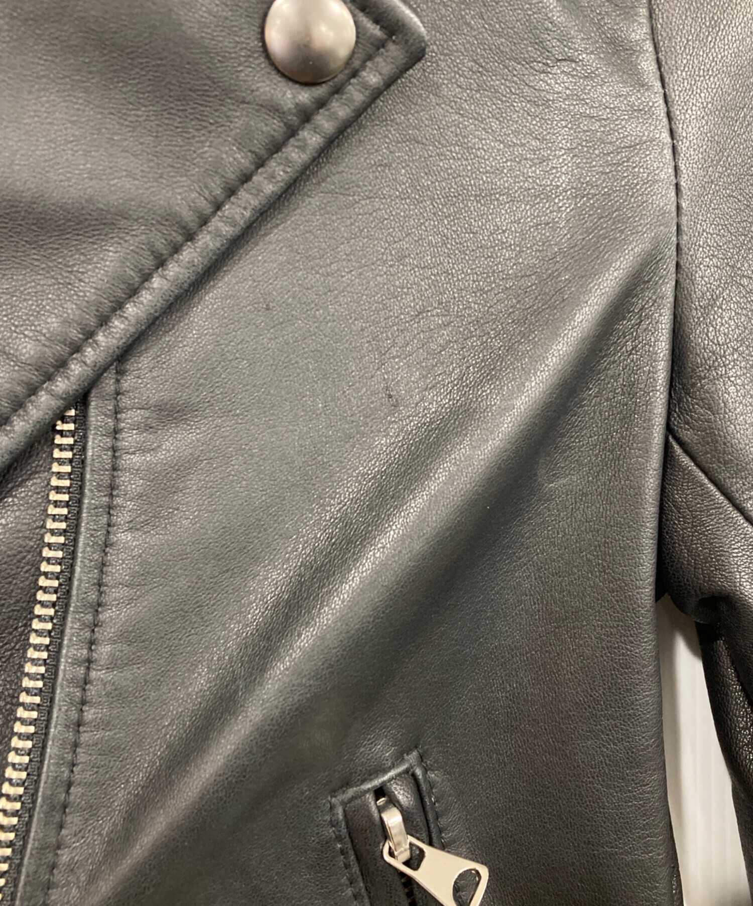 • STUDIOUS(ステュディオス)STUDIOUS (ステュディオス) ラムレザーライダースジャケット ブラック サイズ:1の古着・服飾アイテム フロントヨゴレ