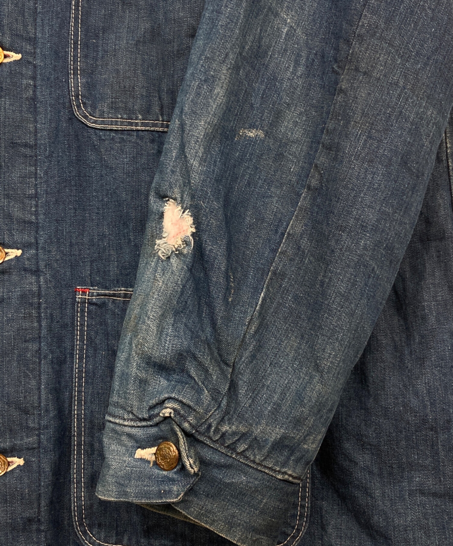 | 状態 | 各所にヨゴレがございます。 また、袖にリペア跡がございます。裏地の色褪せがございます。 こちらの商品は中古品の為、使用に伴いますキズ、汚れが各所に見受けられます。店頭にて展示販売を行っている為、記載に無い細かなキズ、汚れが見受けられる場合がございます。 |