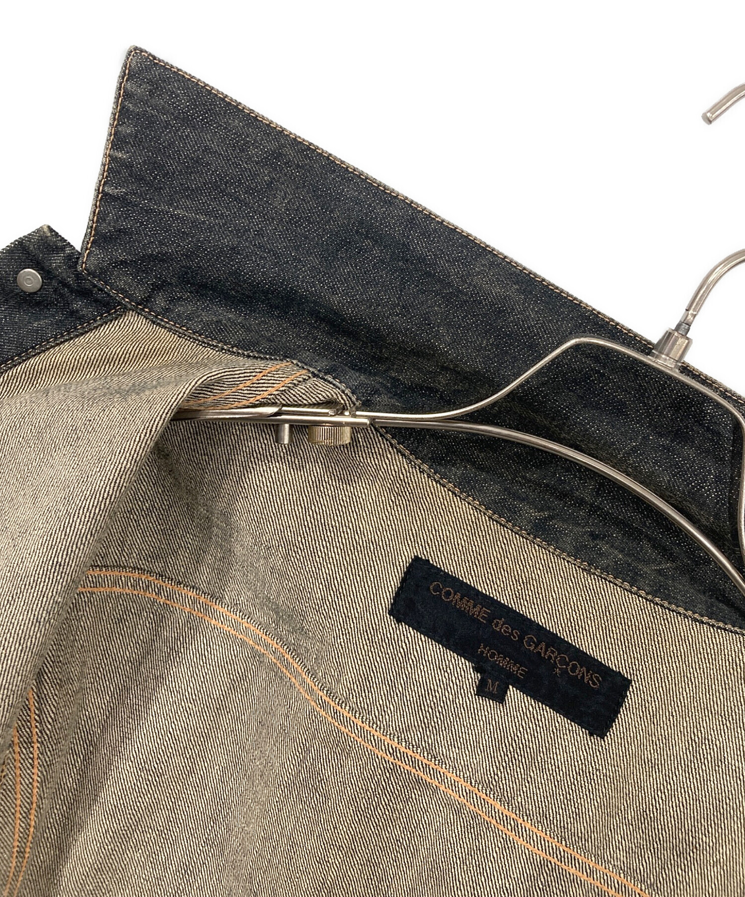 | スタッフコメント | 田中オム後期の完成された時期の田中オムらしい「普遍的でありながら捻りの効いた」ディテールが見られます。 トラッカージャケットをベースにした、V字状の切り替えが入るオーソドックスなシルエットのデニムジャケットです。 |