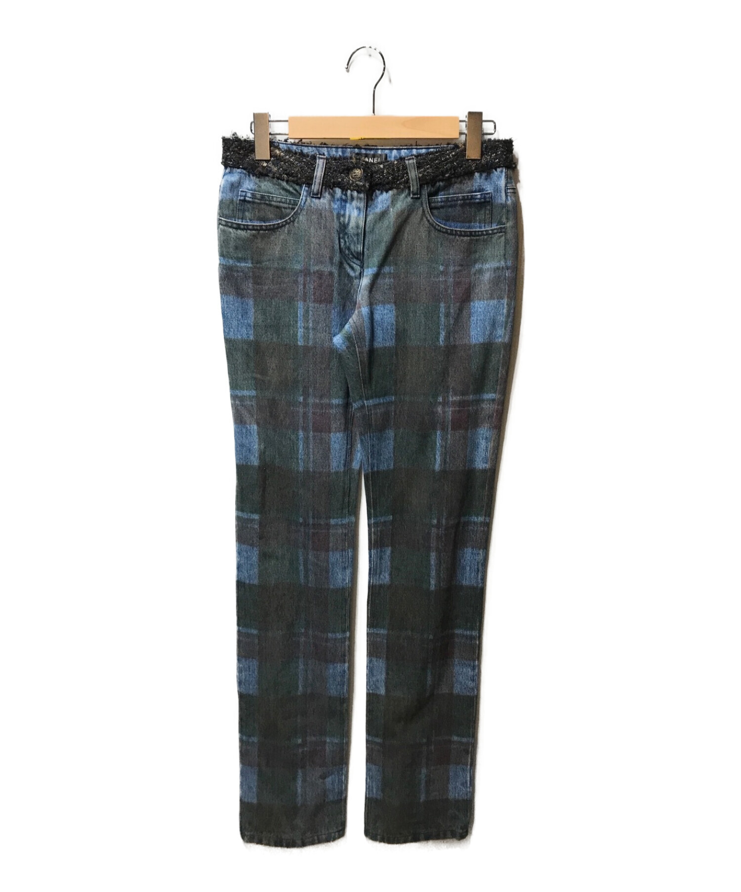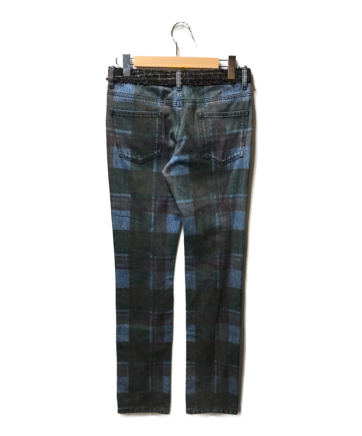 ツイード切替チェックデニムパンツ B6752