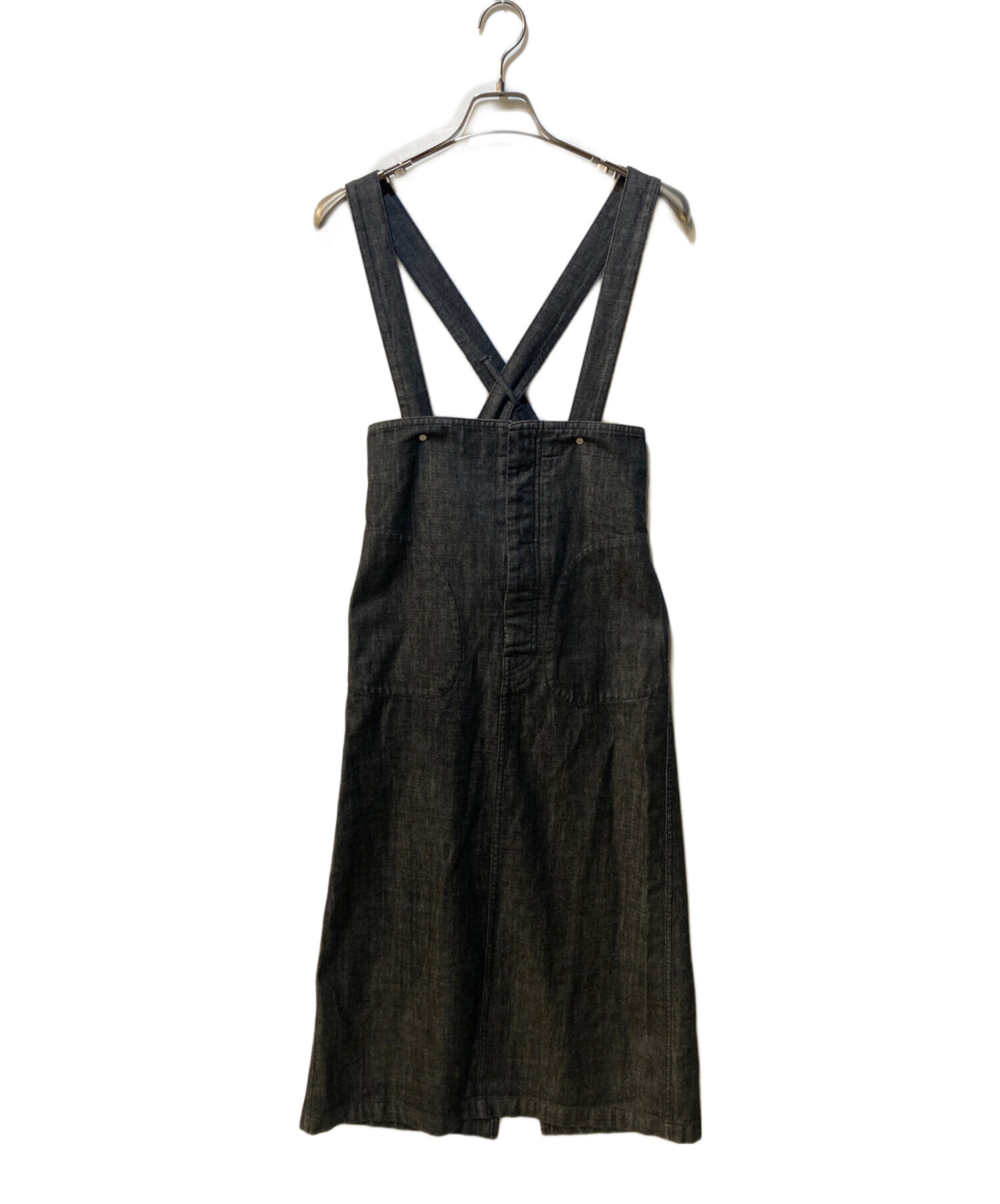 • MACPHEE(マカフィー)MACPHEE (マカフィー) コットンデニム ハイウエストジャンパースカート グレー サイズ:34の古着・服飾アイテム シンチバック金具コキズ有