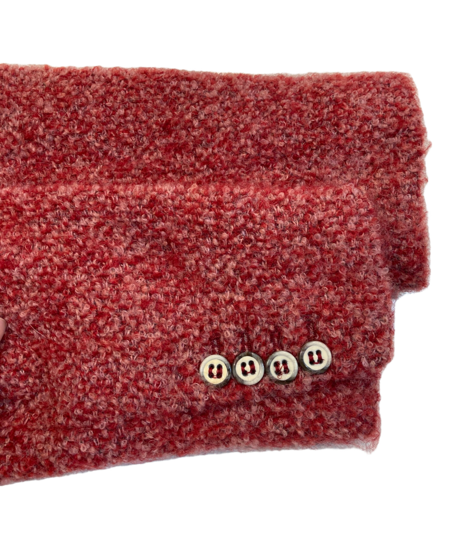 | 素材 | 表地 ウール32% アルパカ23% モヘア23% ナイロン22% 裏地 ポリエステル56% レーヨン44% |