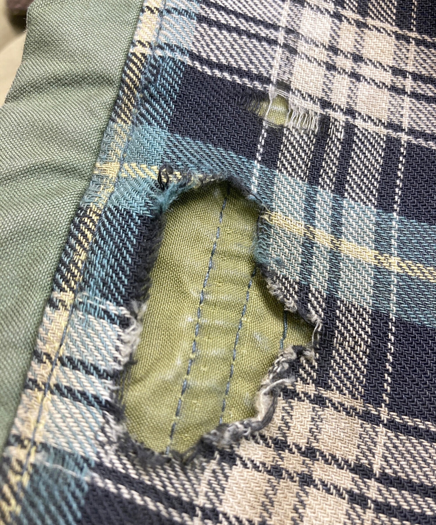 目立つシミや汚れ、におい等がある場合は商品画像や説明文にて極力表記させていただいておりますが、中古品という商品の特性上、全ての瑕疵や不備、洋服直し箇所を撮影・記載をすることは難しくなっております。また、ほとんどのアイテムは店頭と併売しておりますため、出品掲載時からコンディションが変動している場合もございます。あらかじめご了承くださいませ。