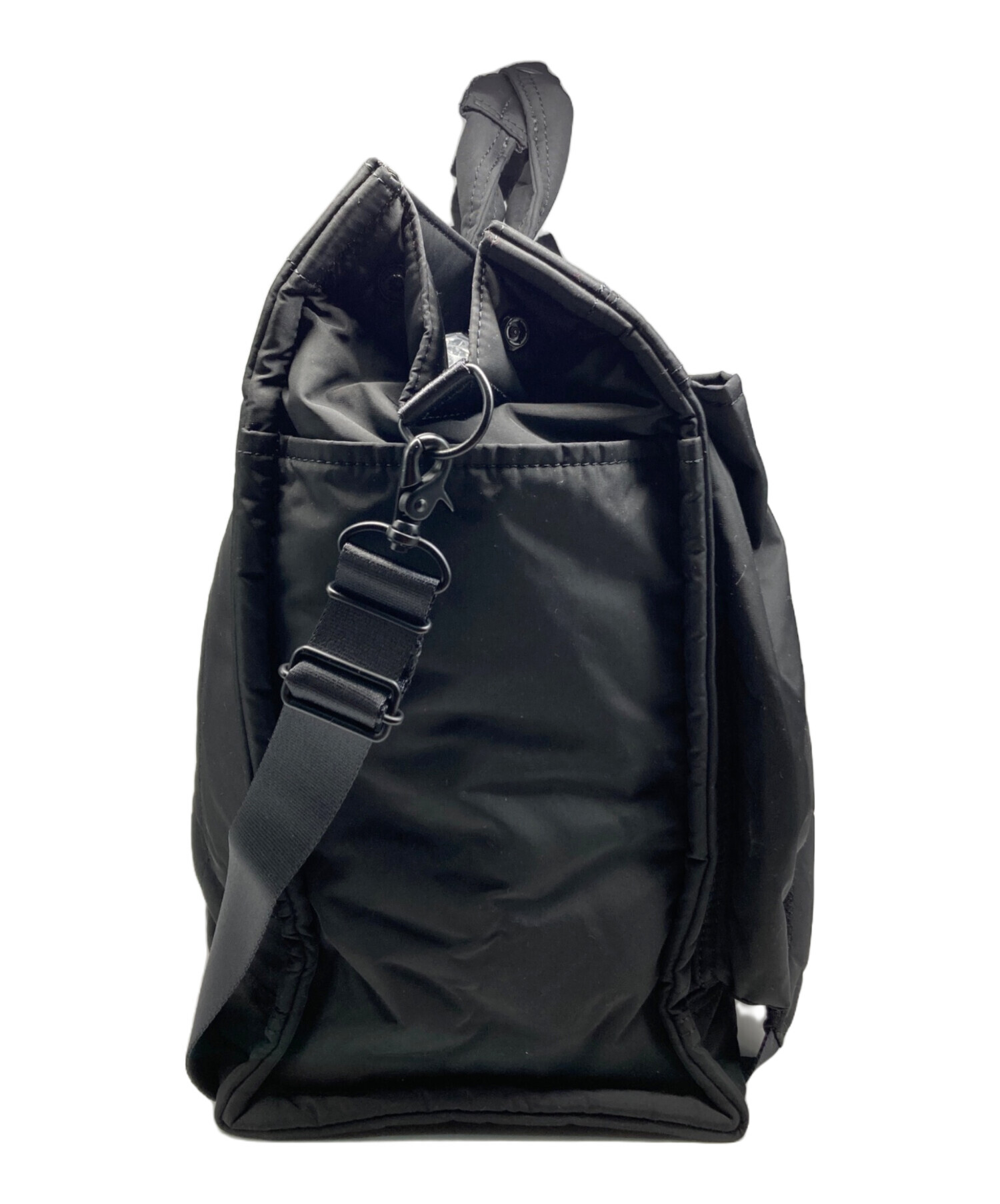 スタッフコメント 13inch のPCや雑誌などが入るサイズのトートバッグ(L)です。マチ幅を広く設けてフォルムを美しく保つように仕上げています。メイン収納部の口元はホックで開閉する仕様で、荷物の出し入れを簡単に行うことができます。内装にPCスリーブを付属しているため、オン・オフどちらのシーンでもお使いいただけます。