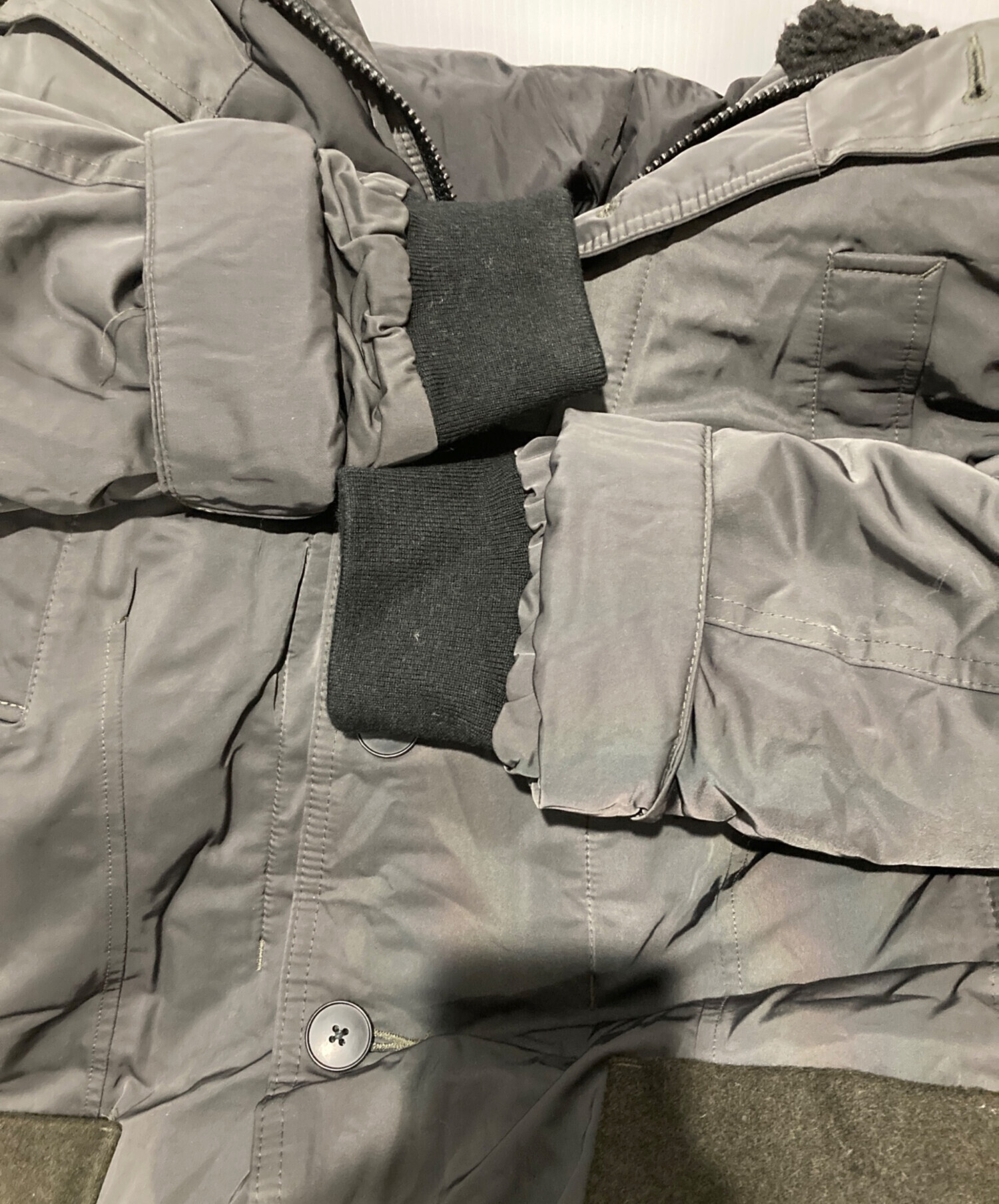 | 状態 | 各所に白ヨゴレ、リブにやや毛玉がございます。 こちらの商品は中古品の為、使用に伴います細かなキズ、汚れがございます。店頭にて展示販売を行っている為、記載に無い細かなキズ、汚れが見受けられる場合がございます。 |