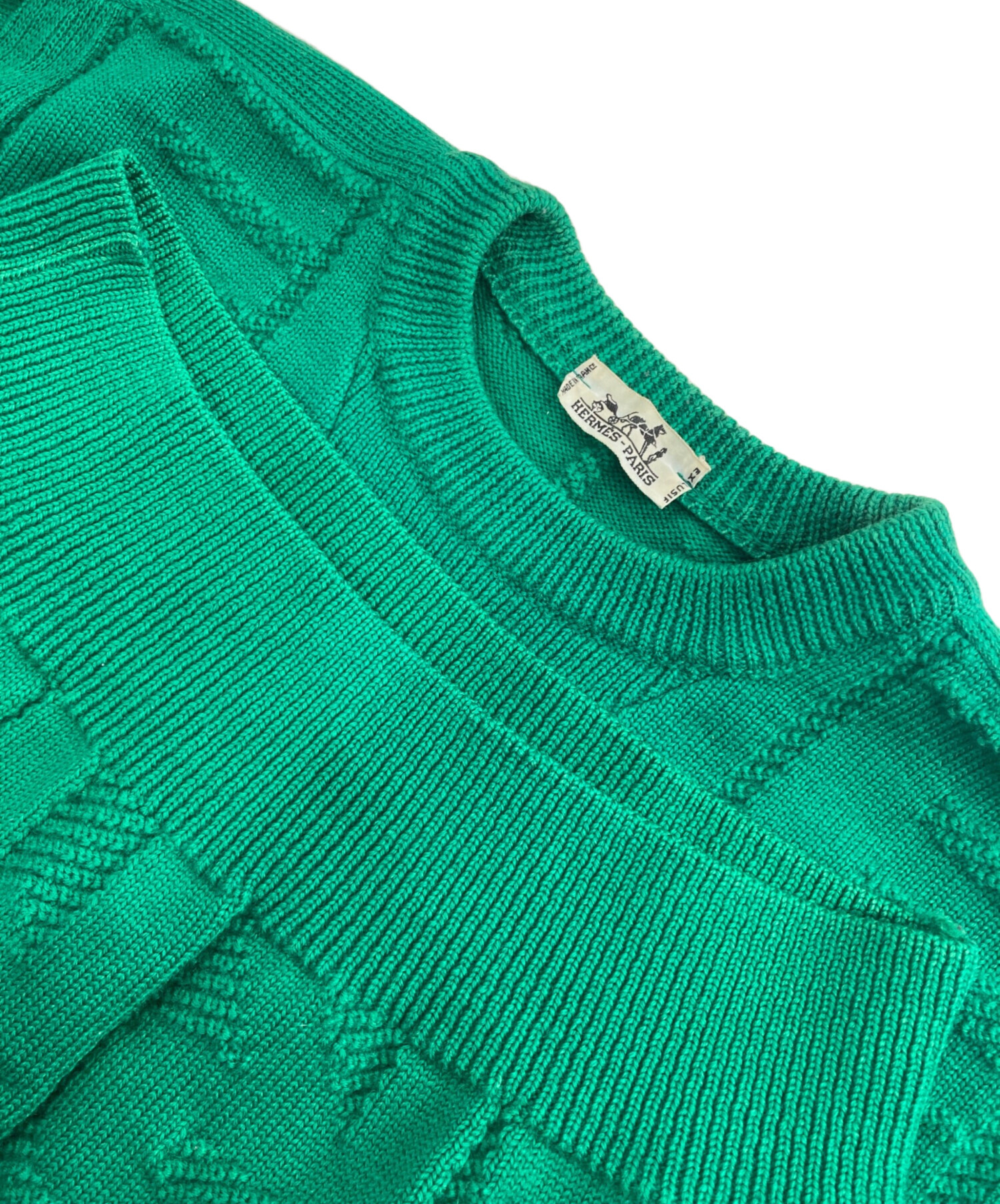 • HERMES(エルメス)HERMES (エルメス) ウールニット グリーン サイズ:38の古着・服飾アイテム タグヨゴレ、襟、裾周り色褪せあり