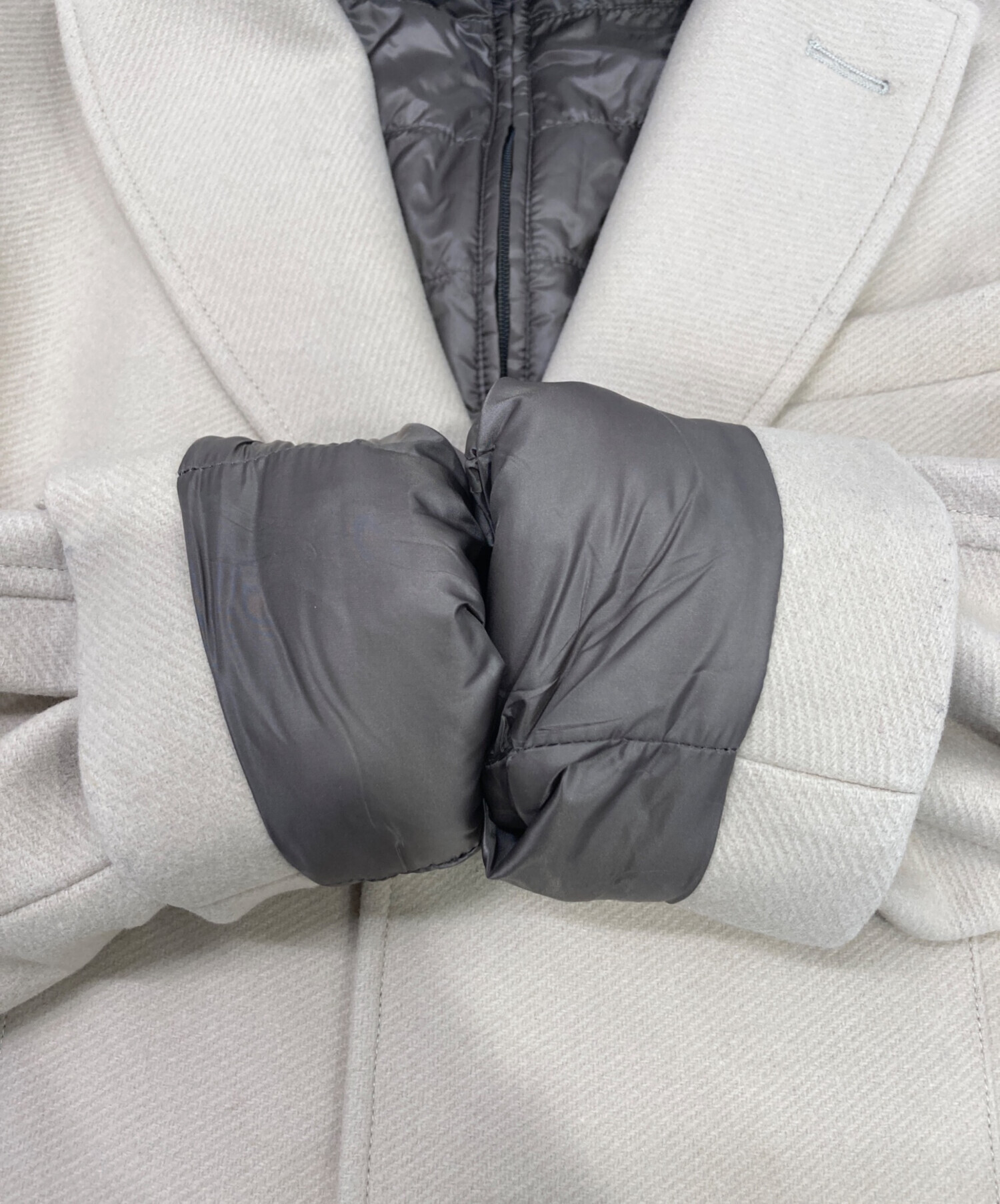 | 素材 | 外側の布地:毛80% ナイロン20% 裏地:ナイロン100% パディング(繊維):ポリエステル100% |