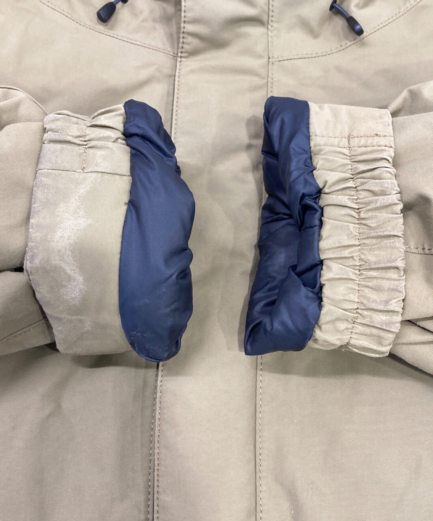 | 素材 | 表地:ナイロン100% 中綿:ダウン80% その他羽毛:20% 表地:ナイロン・ポリエステル フードファー部分 パイル アクリル系80% アクリル20% 基布ポリエステル100% |