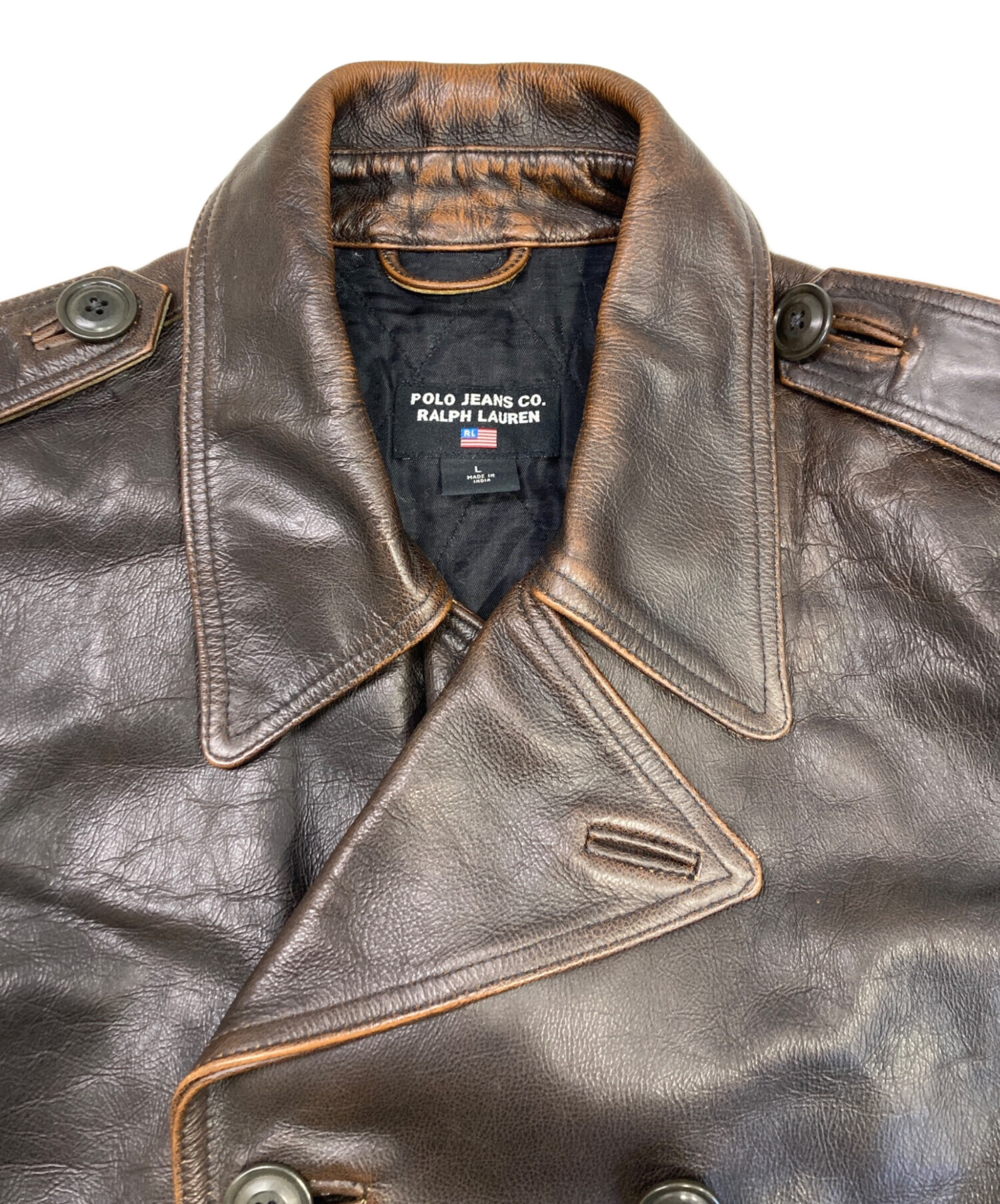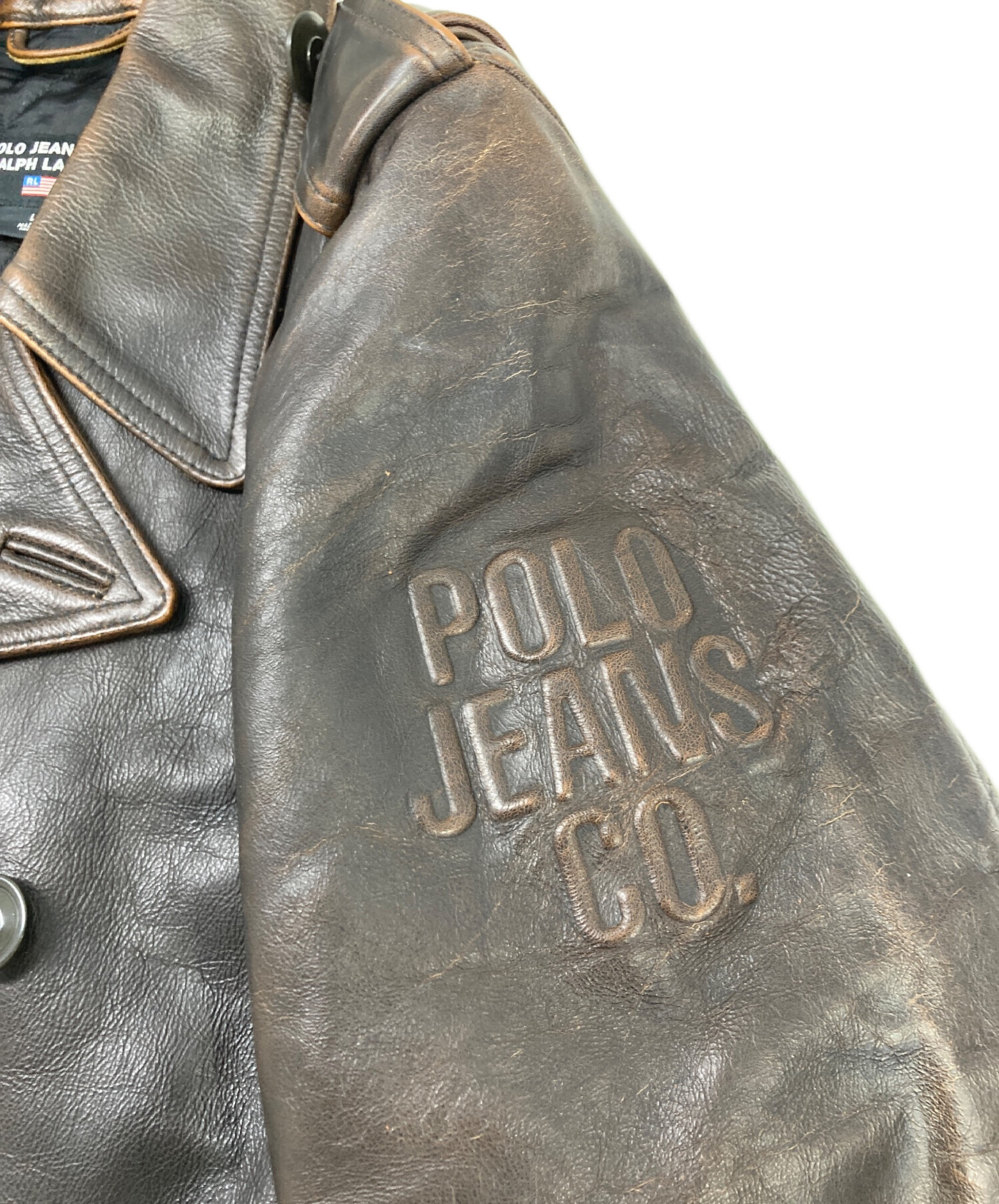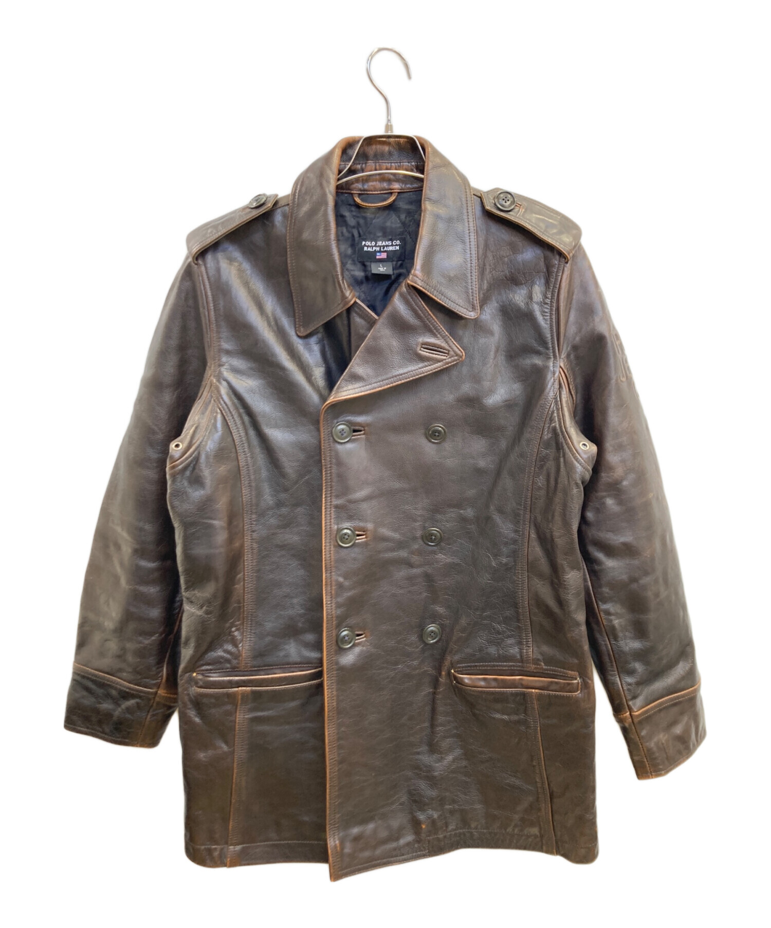 • POLO JEANS CO.(ポロジーンズカンパニー)POLO JEANS CO. (ポロジーンズカンパニー) ダブル レザーカーコート ブラウン サイズ:Lの古着・服飾アイテム キズ有