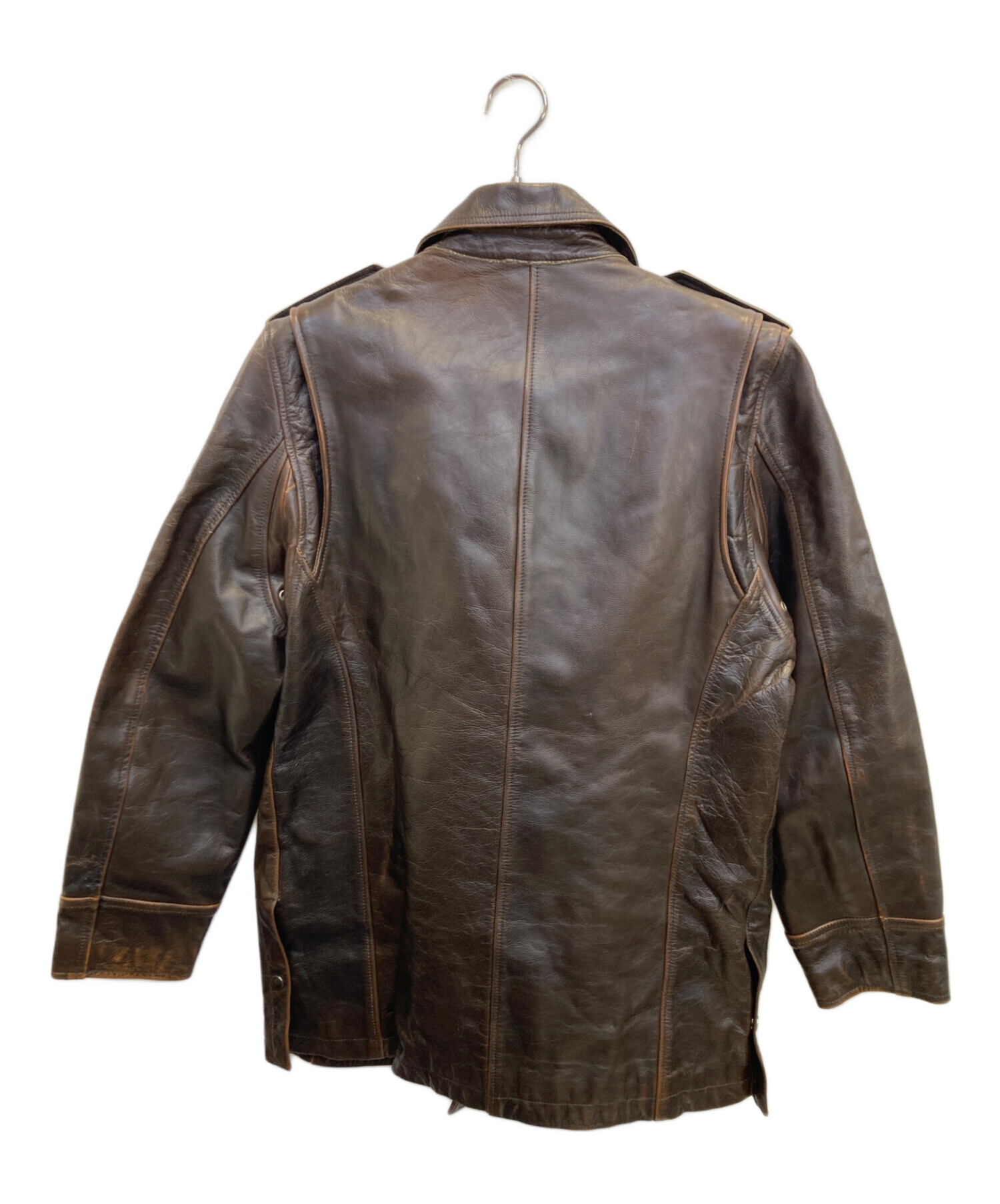• POLO JEANS CO.(ポロジーンズカンパニー)POLO JEANS CO. (ポロジーンズカンパニー) ダブル レザーカーコート ブラウン サイズ:Lの古着・服飾アイテム 背面キズ有