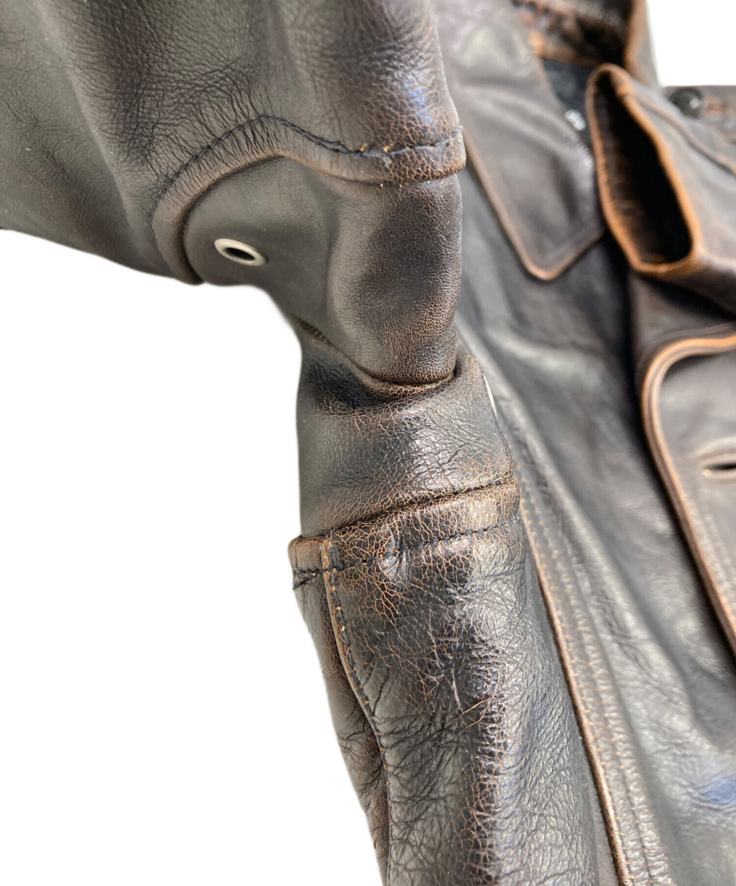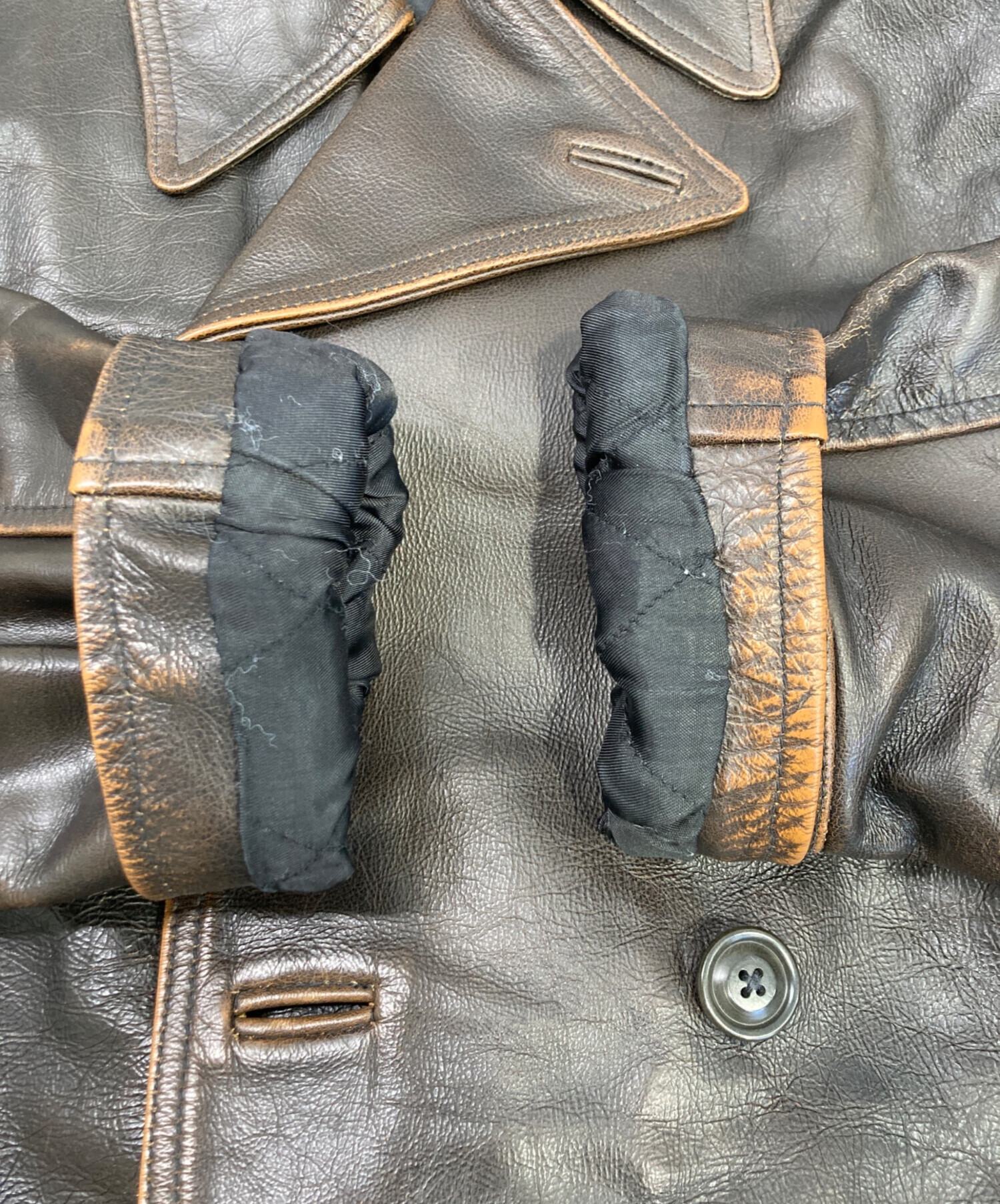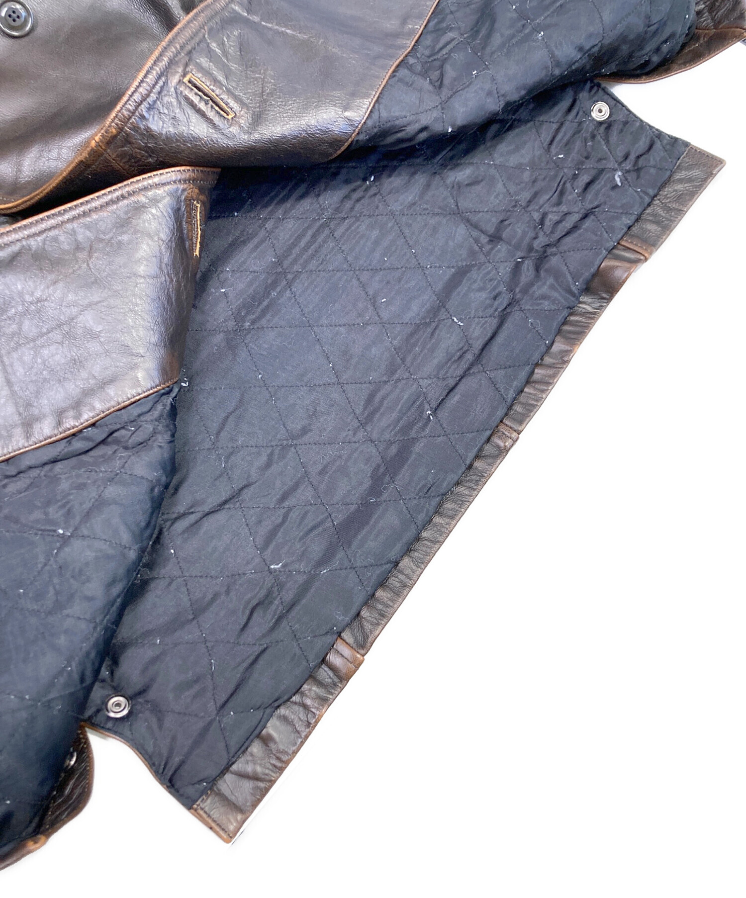• POLO JEANS CO.(ポロジーンズカンパニー)POLO JEANS CO. (ポロジーンズカンパニー) ダブル レザーカーコート ブラウン サイズ:Lの古着・服飾アイテム 袖口裏ホツレ有