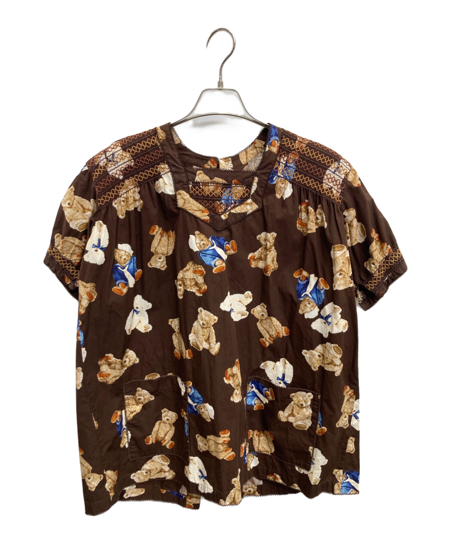 くま柄半袖ブラウス
