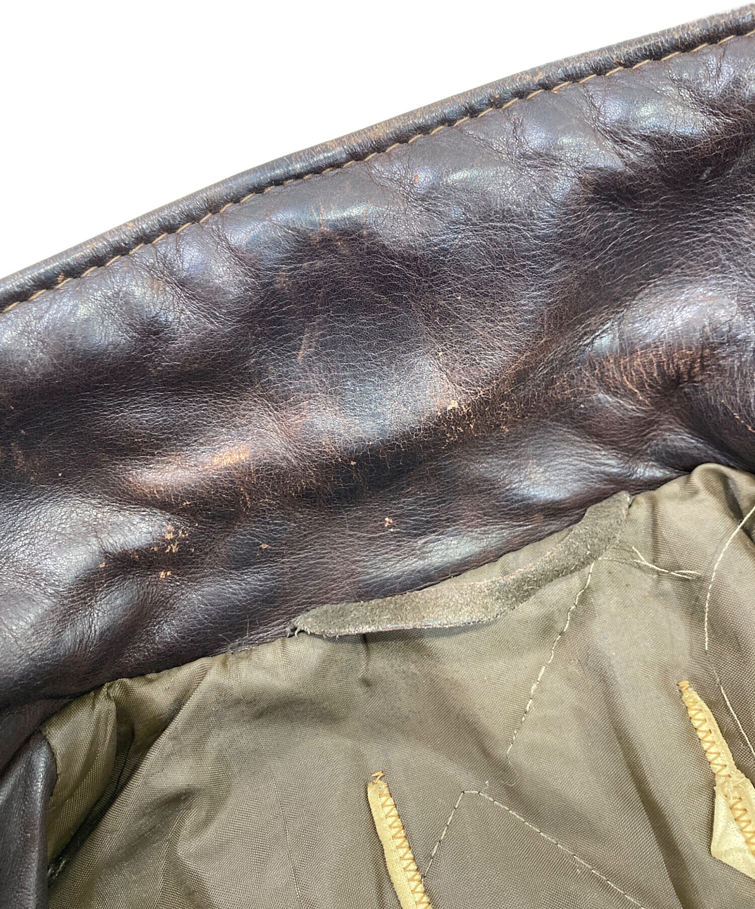 • USED(ユーズド)USED (ユーズド) A-2レザージャケット ブラウン サイズ:不明の古着・服飾アイテム 内部ホツレ、ツレ有
