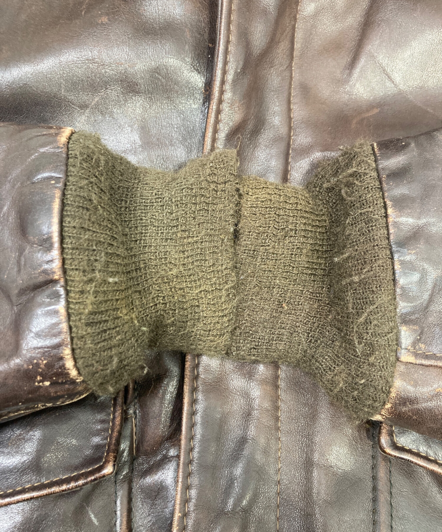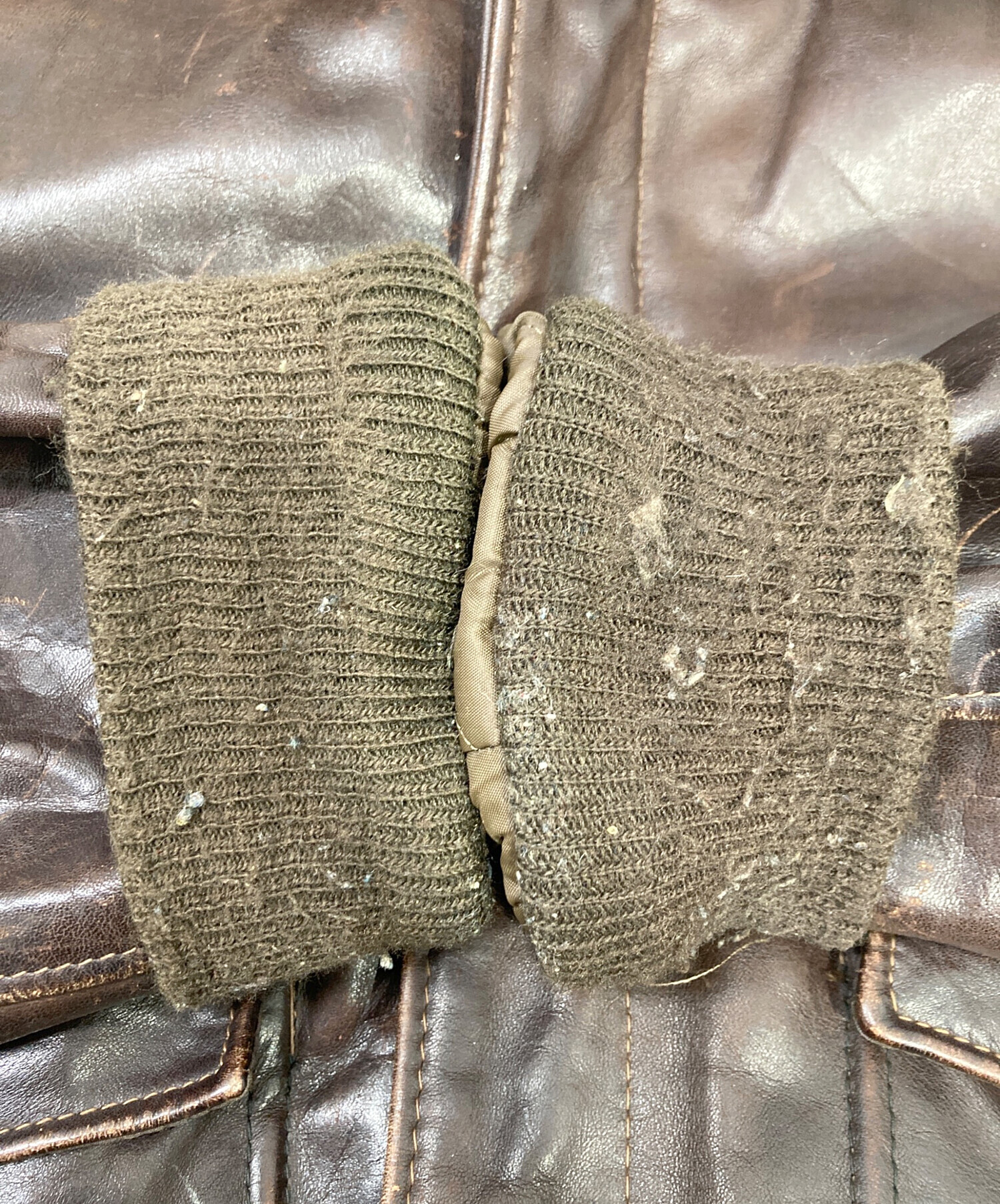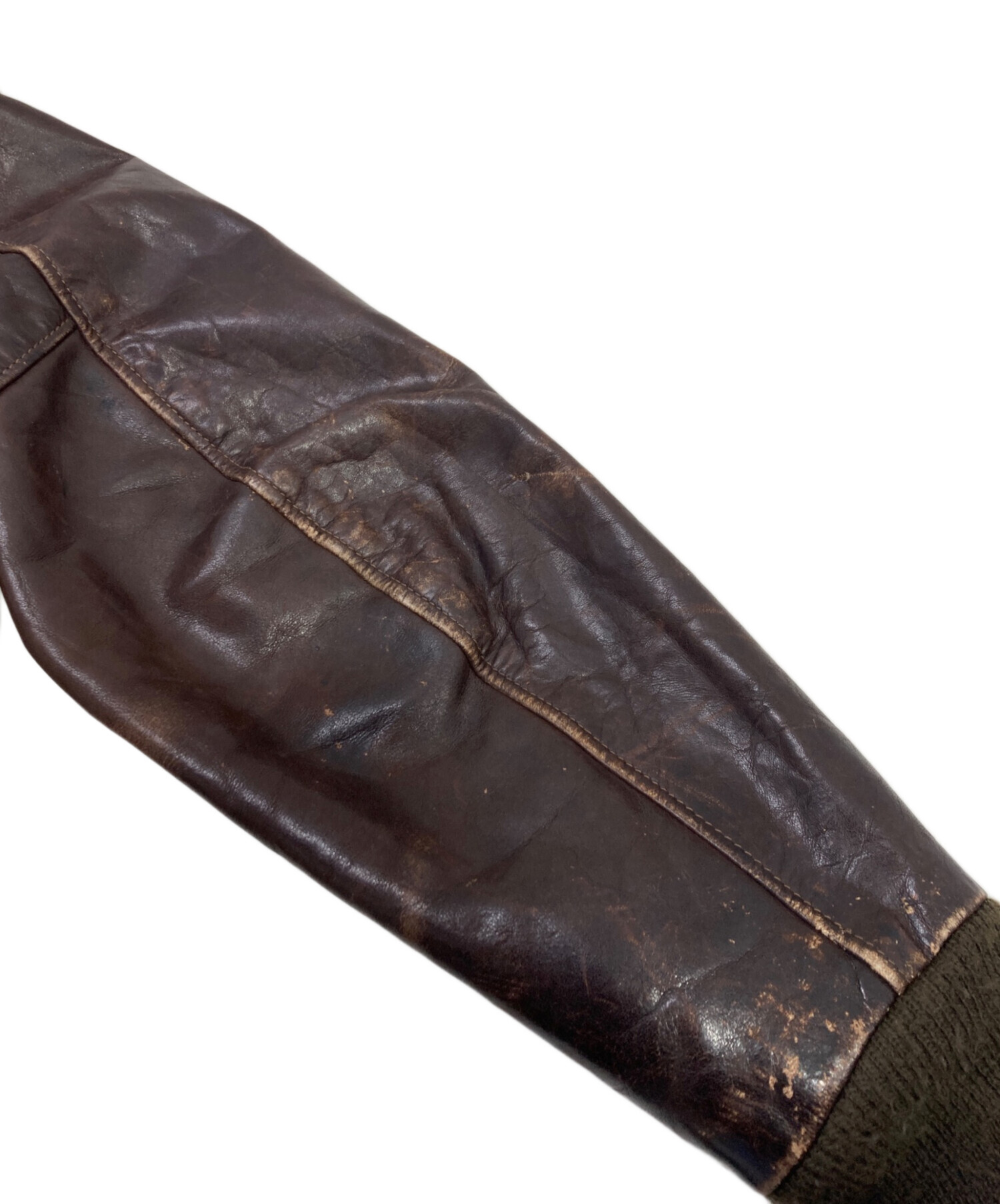 • USED(ユーズド)USED (ユーズド) A-2レザージャケット ブラウン サイズ:不明の古着・服飾アイテム 袖口裏毛羽立ち、ヨゴレ有
