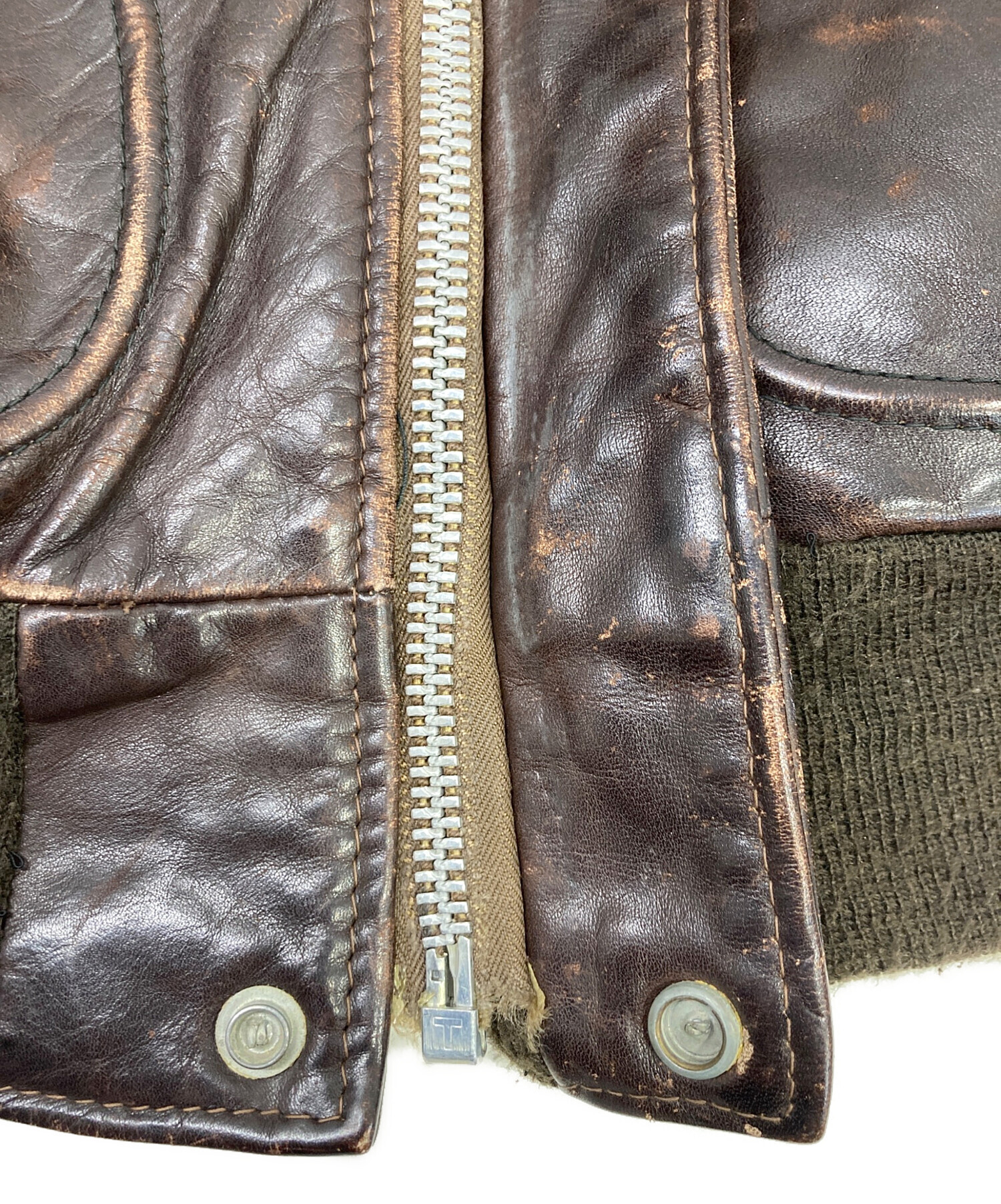• USED(ユーズド)USED (ユーズド) A-2レザージャケット ブラウン サイズ:不明の古着・服飾アイテム 裾リブ毛羽立ち有