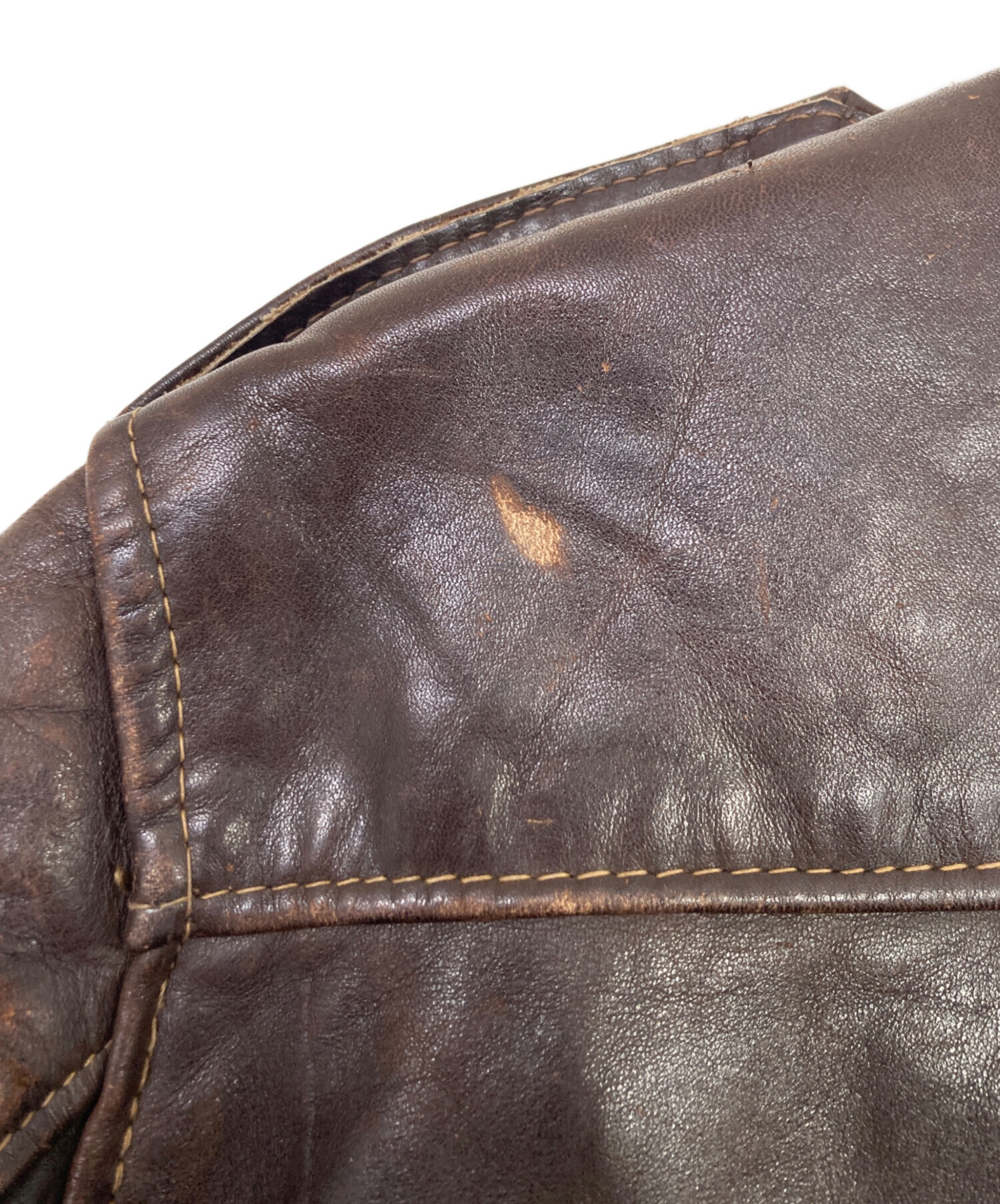• USED(ユーズド)USED (ユーズド) A-2レザージャケット ブラウン サイズ:不明の古着・服飾アイテム ポケット内部毛羽立ち有