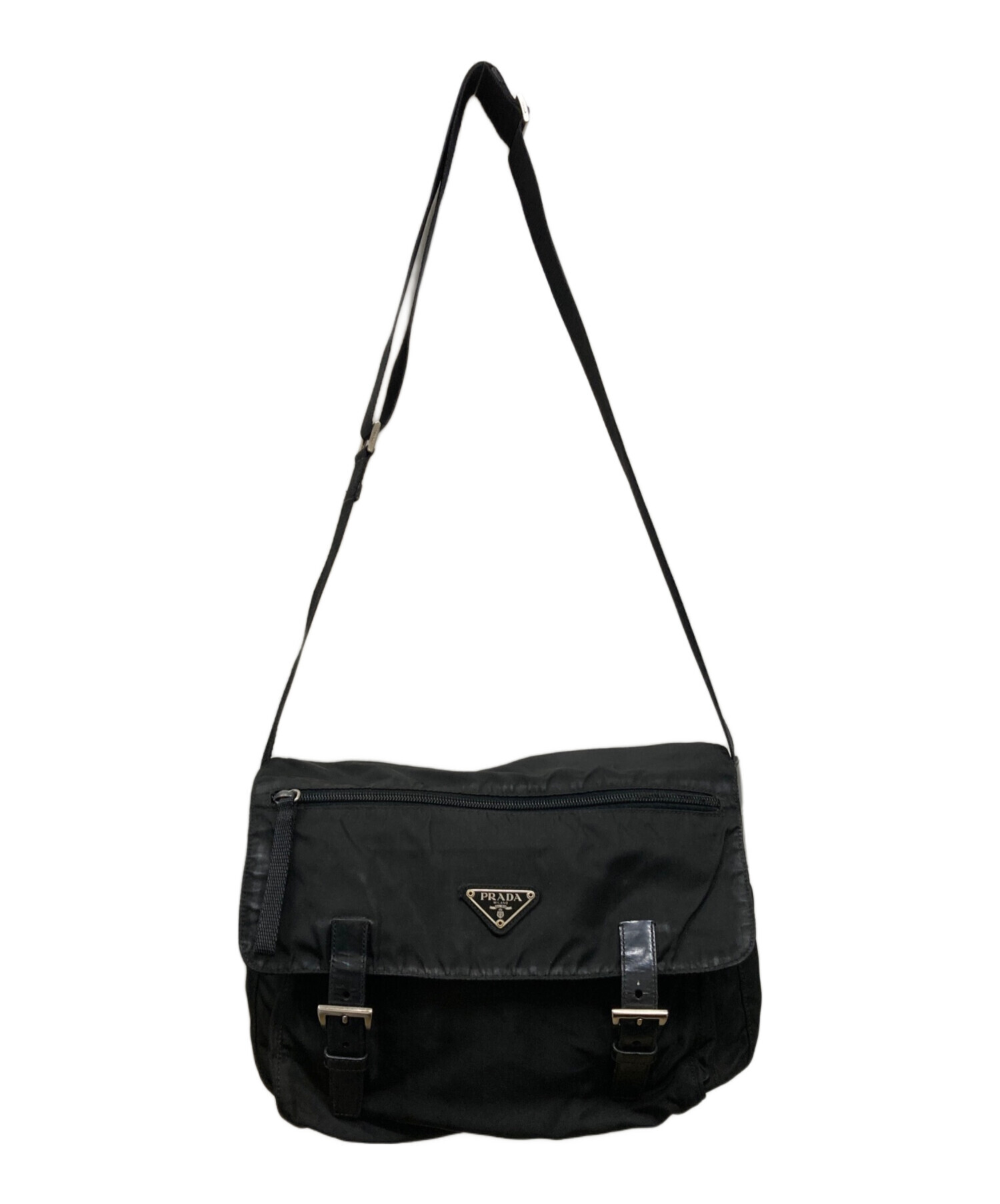 • PRADA(プラダ)PRADA (プラダ) ダブルベルトメッセンジャーバッグ ブラックの古着・服飾アイテム ヨゴレ有
