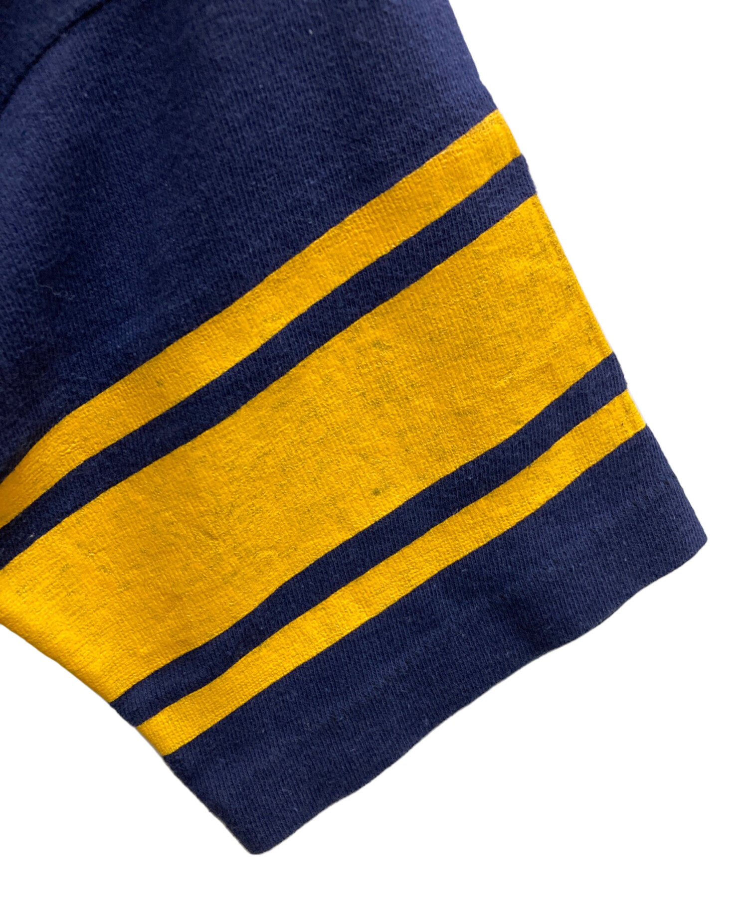 • Champion(チャンピオン)Champion (チャンピオン) 60'S ナンバリング フットボールシャツ ネイビー×イエロー サイズ:Ⅼの古着・服飾アイテム 毛羽立ち有