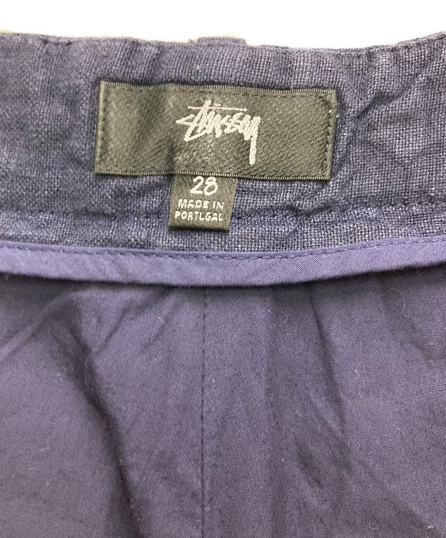 • stussy(ステューシー)stussy (ステューシー) STUSSY RELAXED TROUSER TEXTURED LINEN ネイビー サイズ:71cm (W28)の古着・服飾アイテム ホツレ有