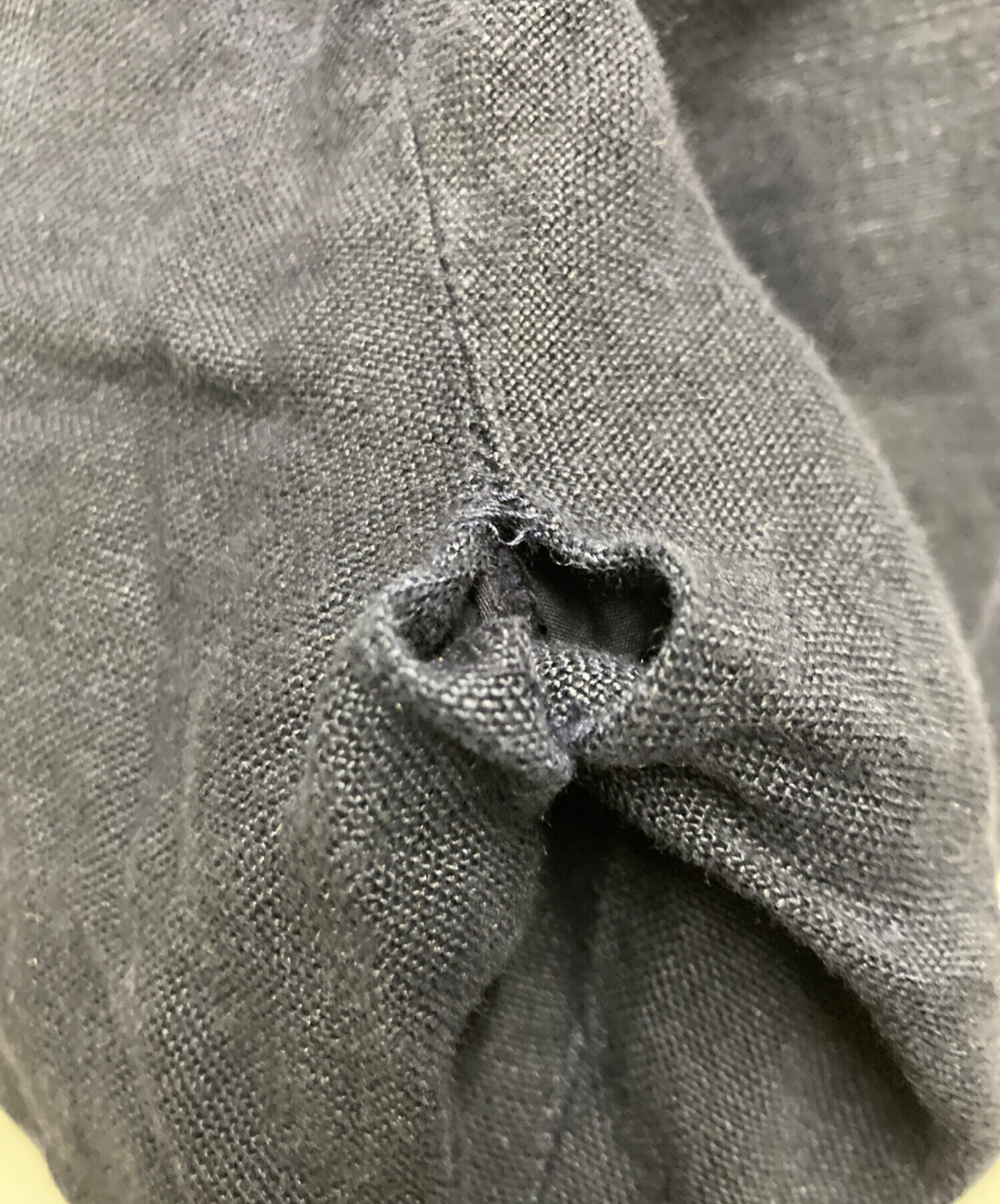 • stussy(ステューシー)stussy (ステューシー) STUSSY RELAXED TROUSER TEXTURED LINEN ネイビー サイズ:71cm (W28)の古着・服飾アイテム ダメージ有