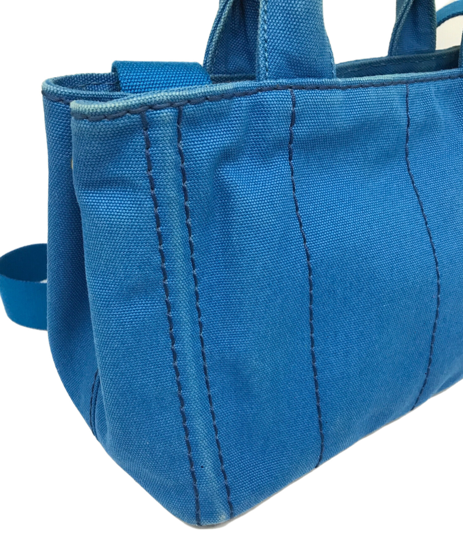• PRADA(プラダ)PRADA (プラダ) カナパ2wayミニトートバッグ ブルーの古着・服飾アイテム アタリ、ヨゴレ有