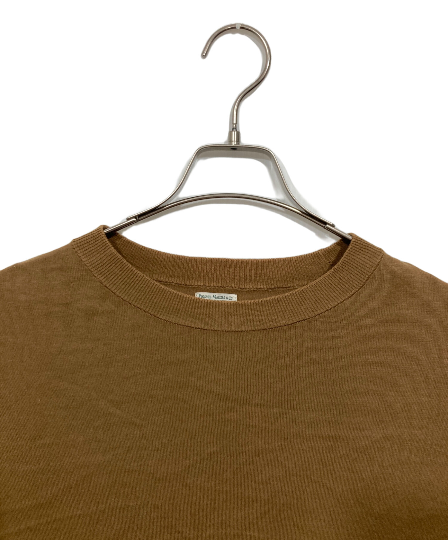 • PHIGVEL MAKERS(フィグベルマーカーズ)PHIGVEL MAKERS (フィグベルマーカーズ) コットンクルーネックニット ブラウン サイズ:Mの古着・服飾アイテム 左脇シミ有