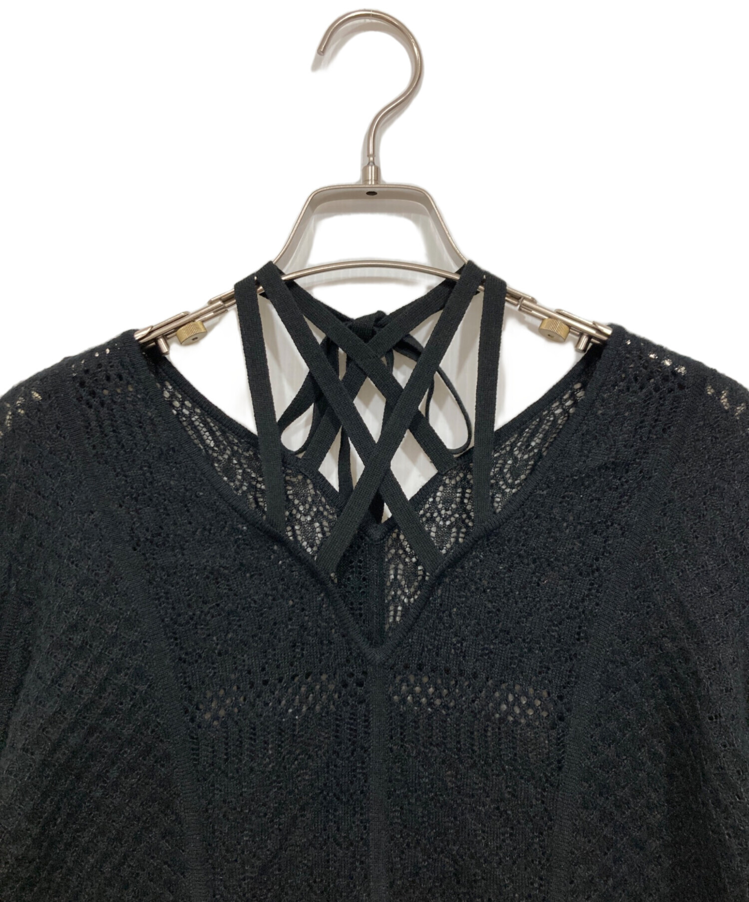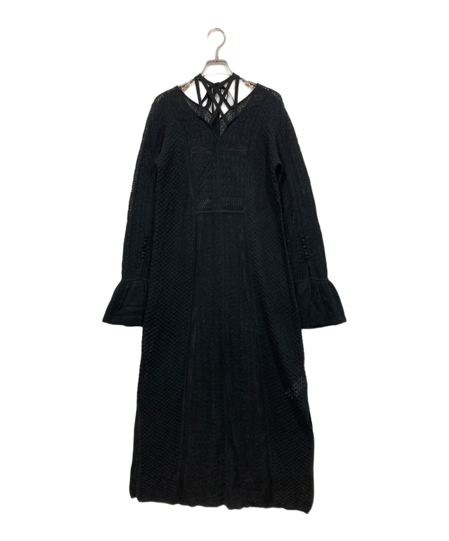 • Ameri(アメリ)AMERI (アメリ) UND CROSS NECK CROCHET KNIT DRESS ブラック サイズ:Sの古着・服飾アイテム ホツレ有
