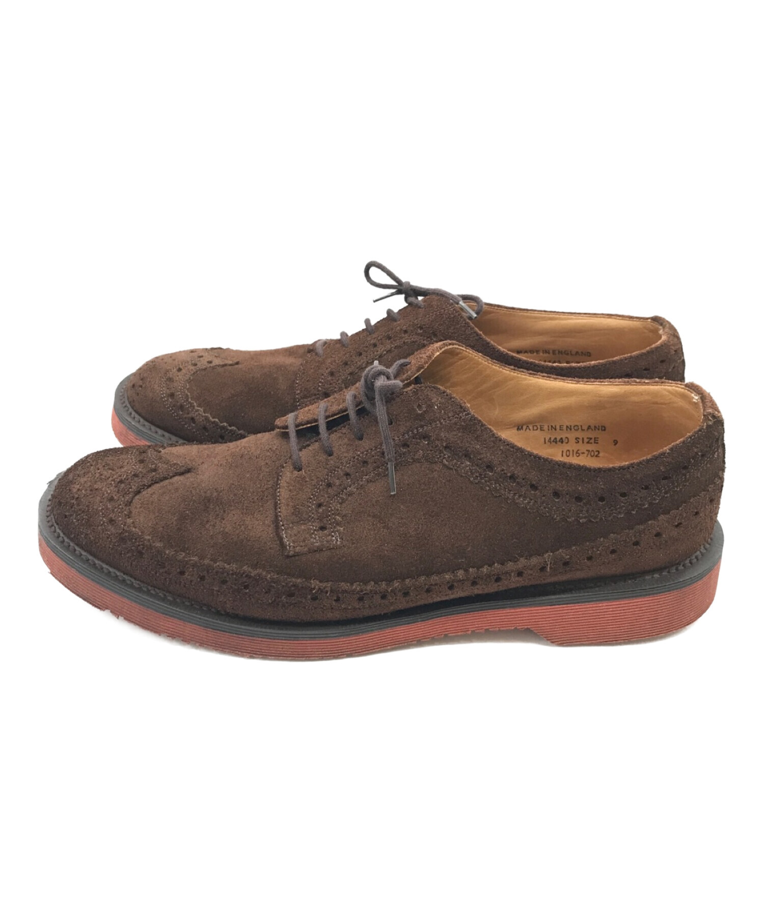 • GEORGE COX(ジョージコックス)GEORGE COX (ジョージコックス) green label relaxing (グリーンレーベルリラクシング) 別注グリンレーベルウイングチップスウェードシューズ ブラウン サイズ:9の古着・服飾アイテム スレ有