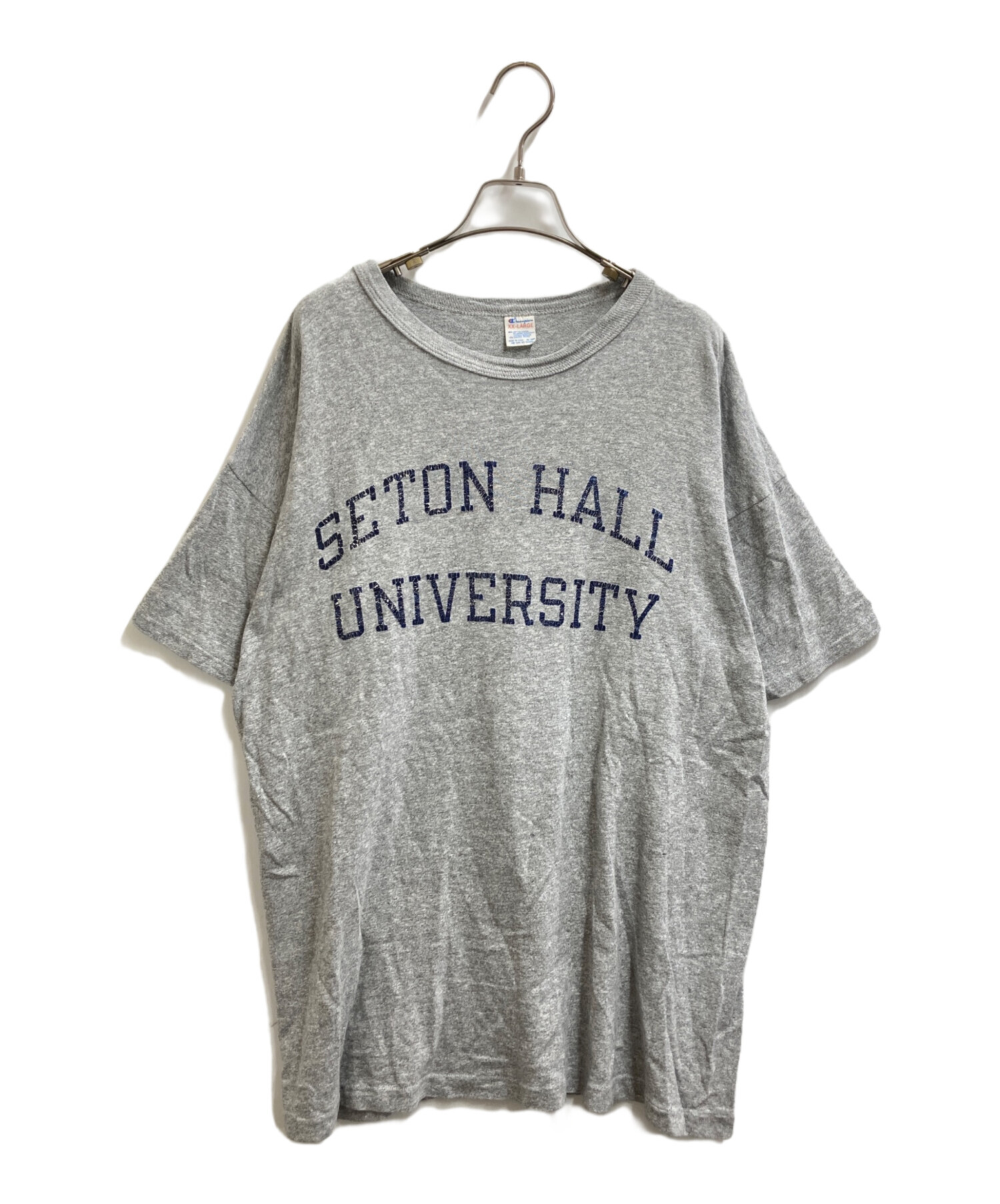 • Champion(チャンピオン)Champion (チャンピオン) SETON HALL UNIVERSITY Tシャツ USA製 80年代後期 トリコタグ グレー サイズ:XXLの古着・服飾アイテム プリント剥がれ有