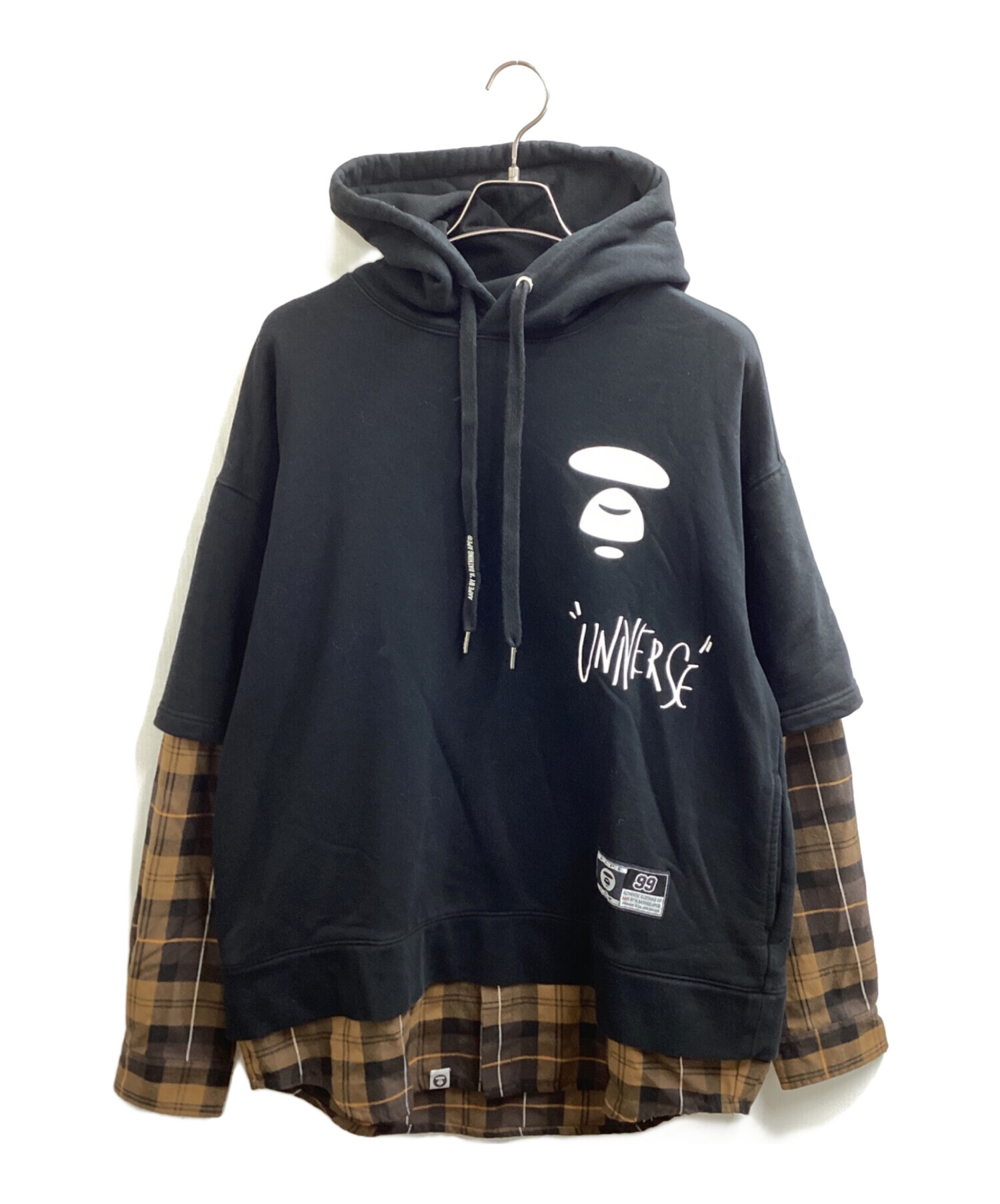 • Aape BY A BATHING APE(エーエイプ バイ アベイシングエイプ)AAPE BY A BATHING APE (エーエイプ バイ アベイシングエイプ) レイヤードパーカー / AAPSWM3848XXH ブラック サイズ:Lの古着・服飾アイテム 袖裏毛羽立ち有