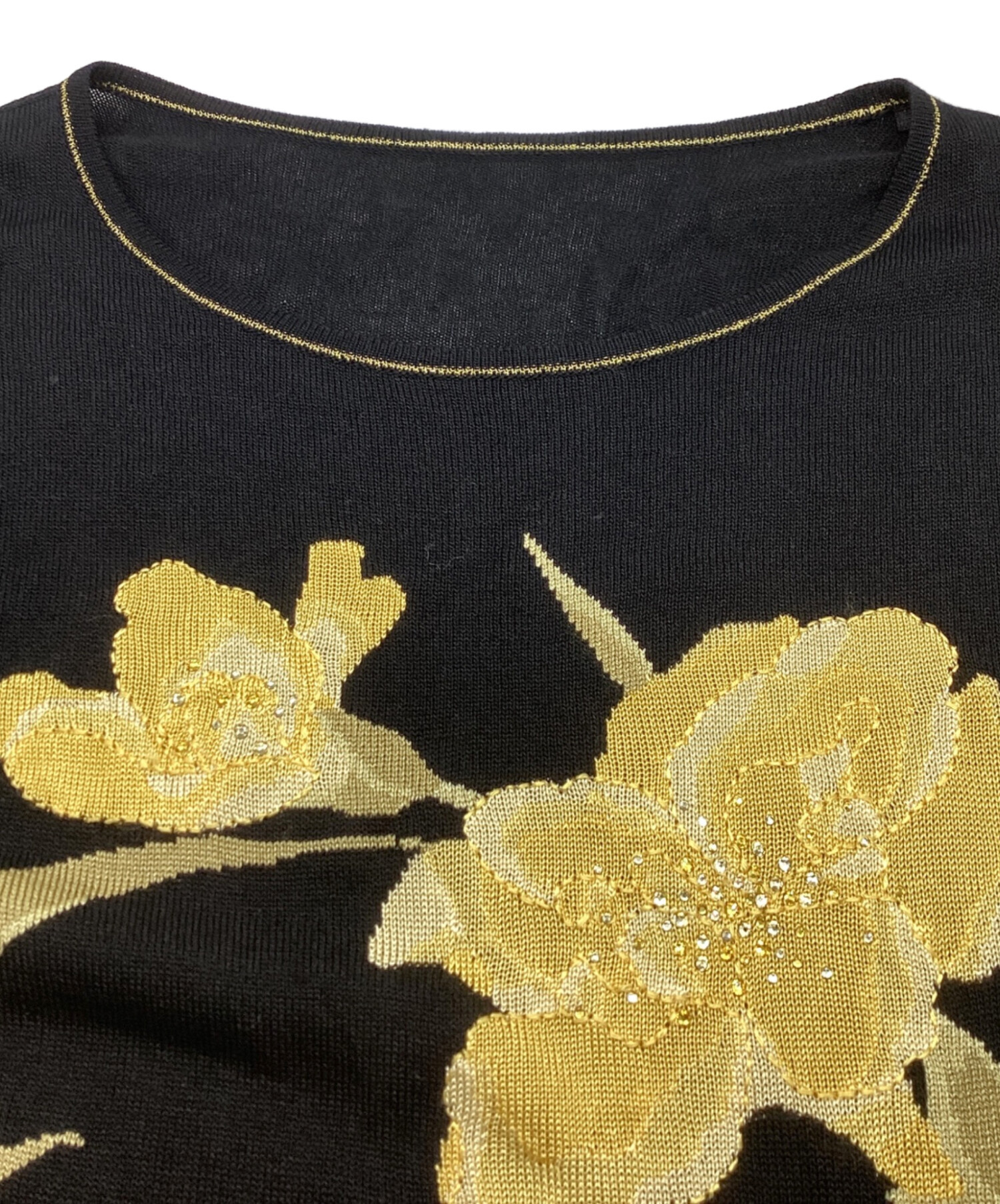 花柄 ラインストーンニット