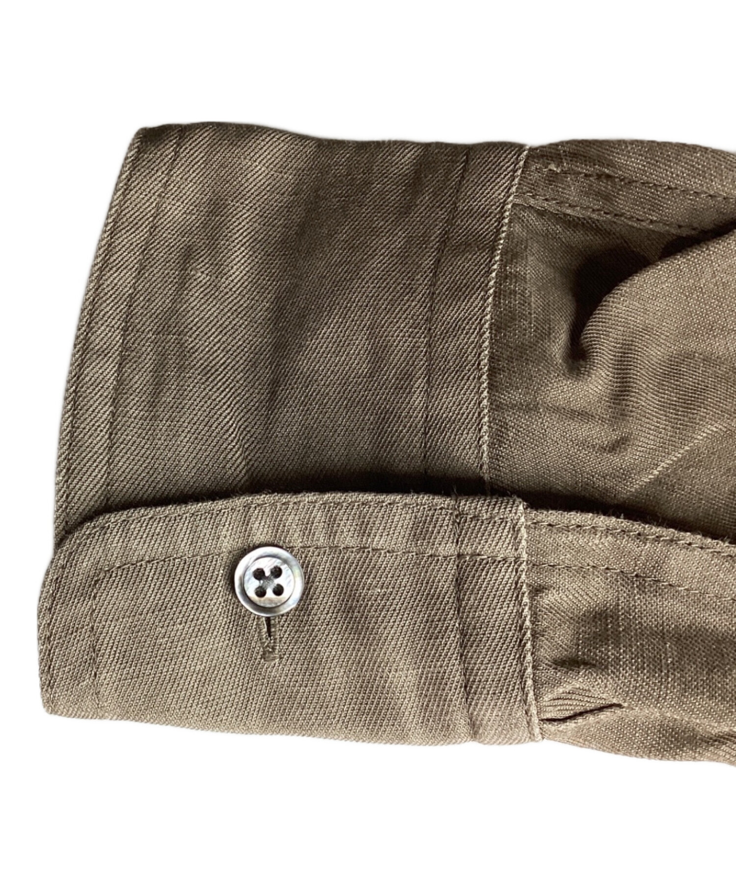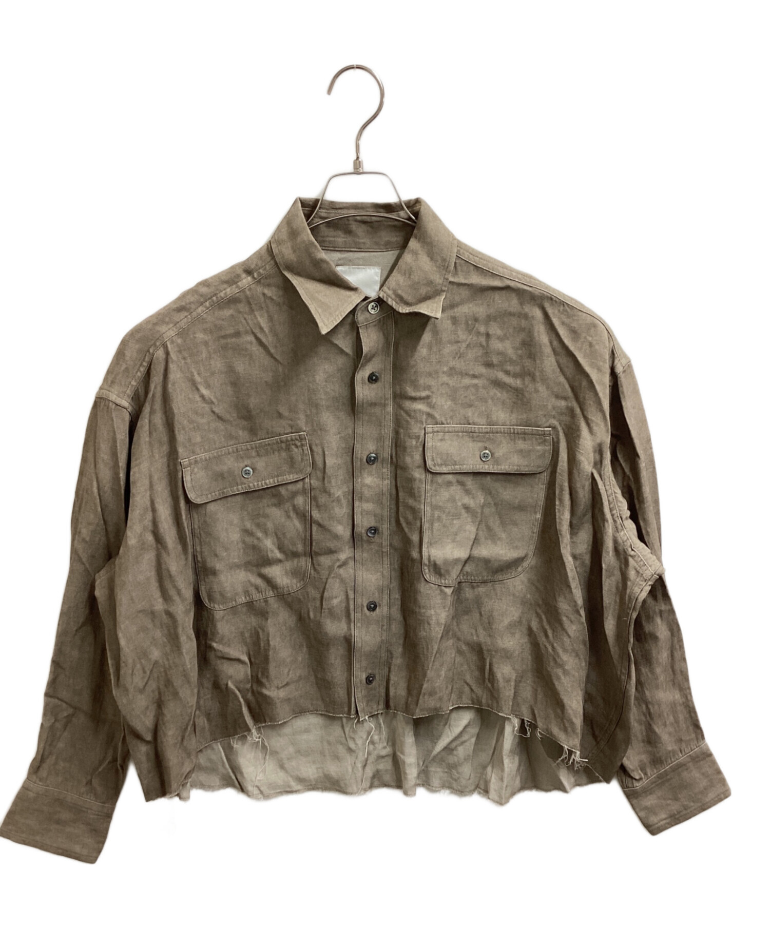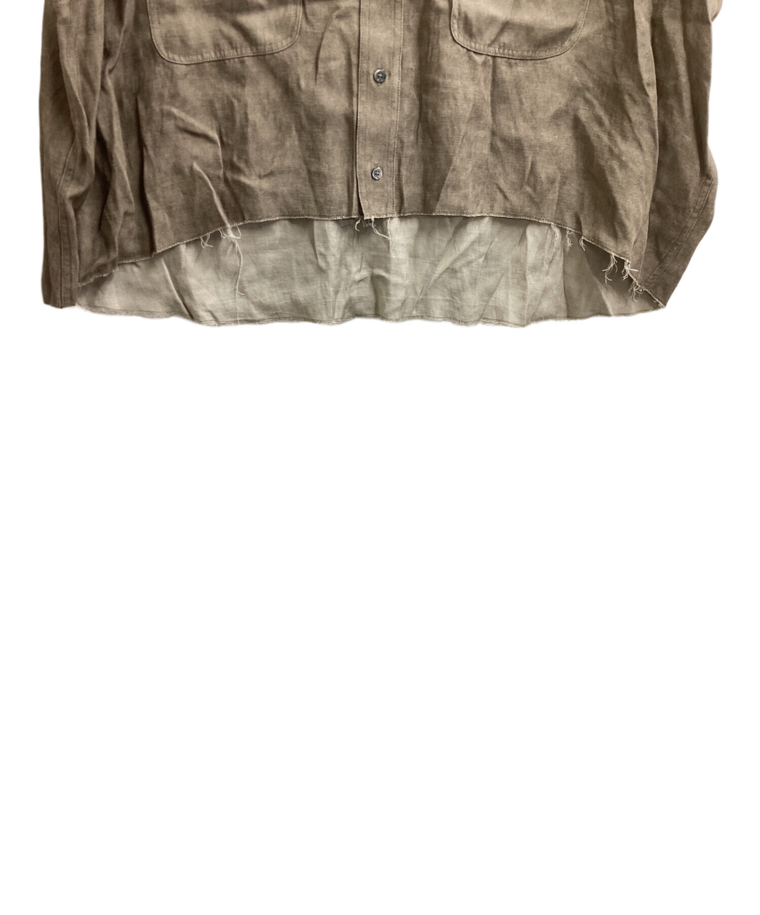 • Whim Gazette(ウィムガゼット)Whim Gazette (ウィムガゼット) ツイル顔料染めスクエアシャツ / WGZ1051504A0008 ベージュ サイズ:FREEの古着・服飾アイテム 前面背面ともにリネン素材特有のネップ感じられる部分ございます