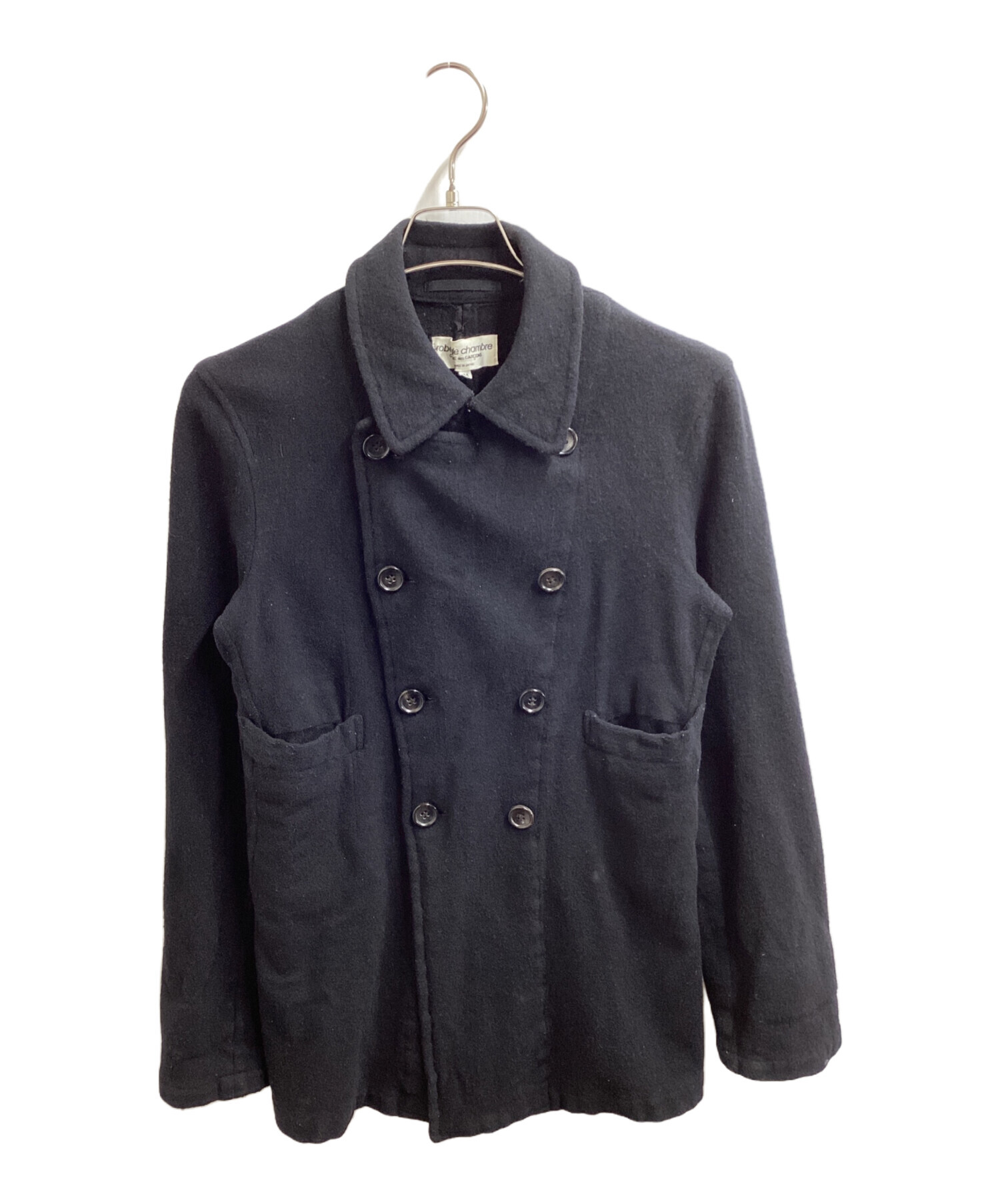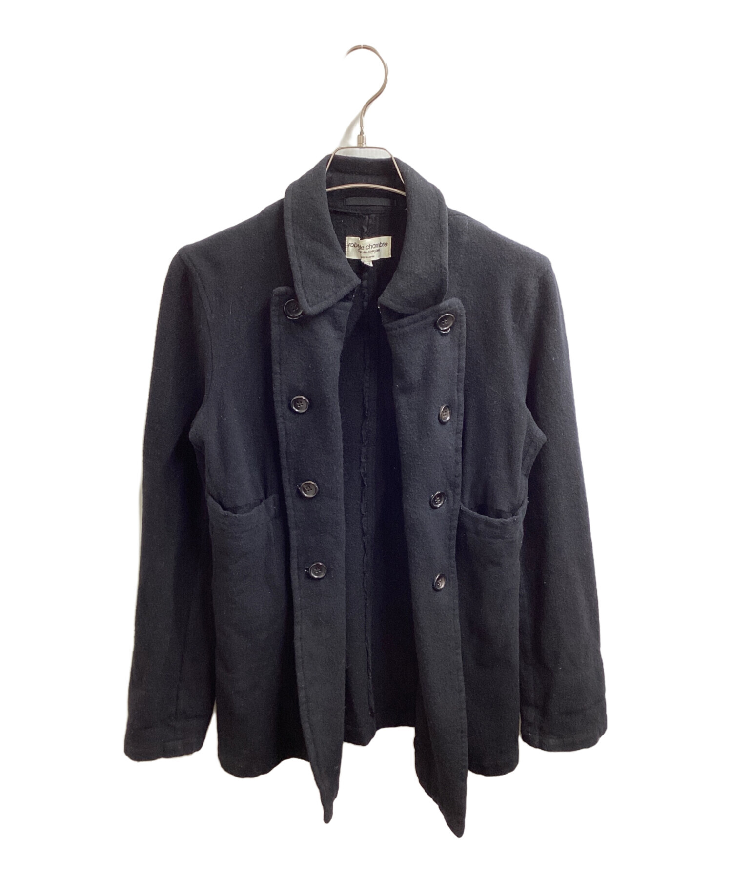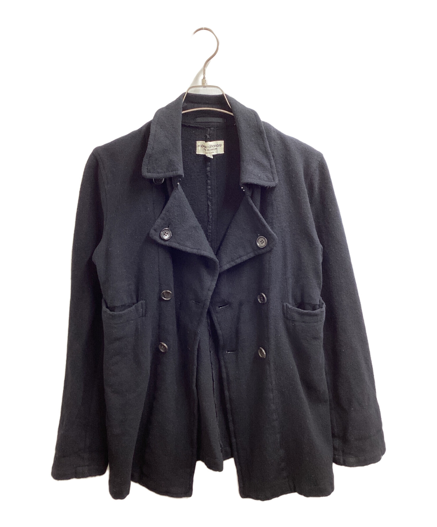 • ROBE DE CHAMBRE COMME DES GARCONS(ローブドシャンブル コムデギャルソン)ROBE DE CHAMBRE COMME DES GARCONS (ローブドシャンブル コムデギャルソン) Pコート RJ-04007M AD1998 ブラック サイズ:Mの古着・服飾アイテム 年代物のため毛羽立ち感じられる部分,一部毛玉ございます