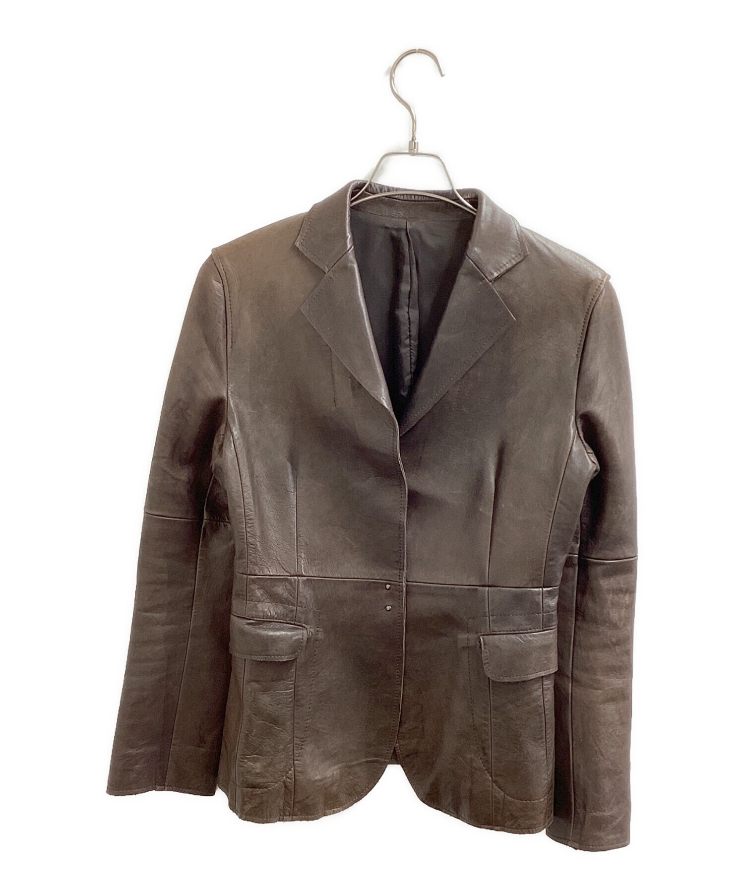 • MIHARA YASUHIRO(ミハラヤスヒロ)MIHARA YASUHIRO (ミハラヤスヒロ) レザーテーラードジャケット / カンガルー / 旧タグ ブラウン サイズ:Mの古着・服飾アイテム