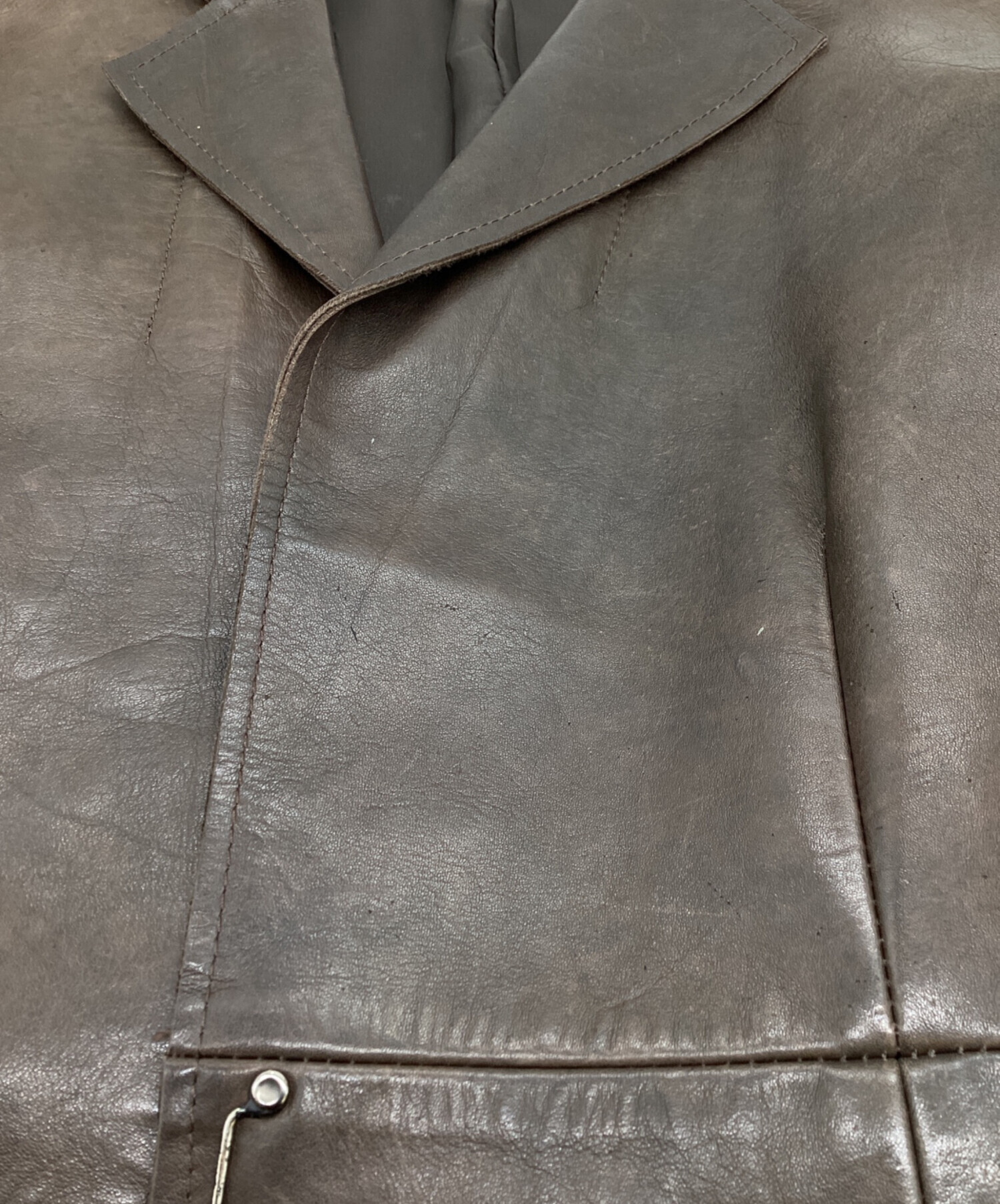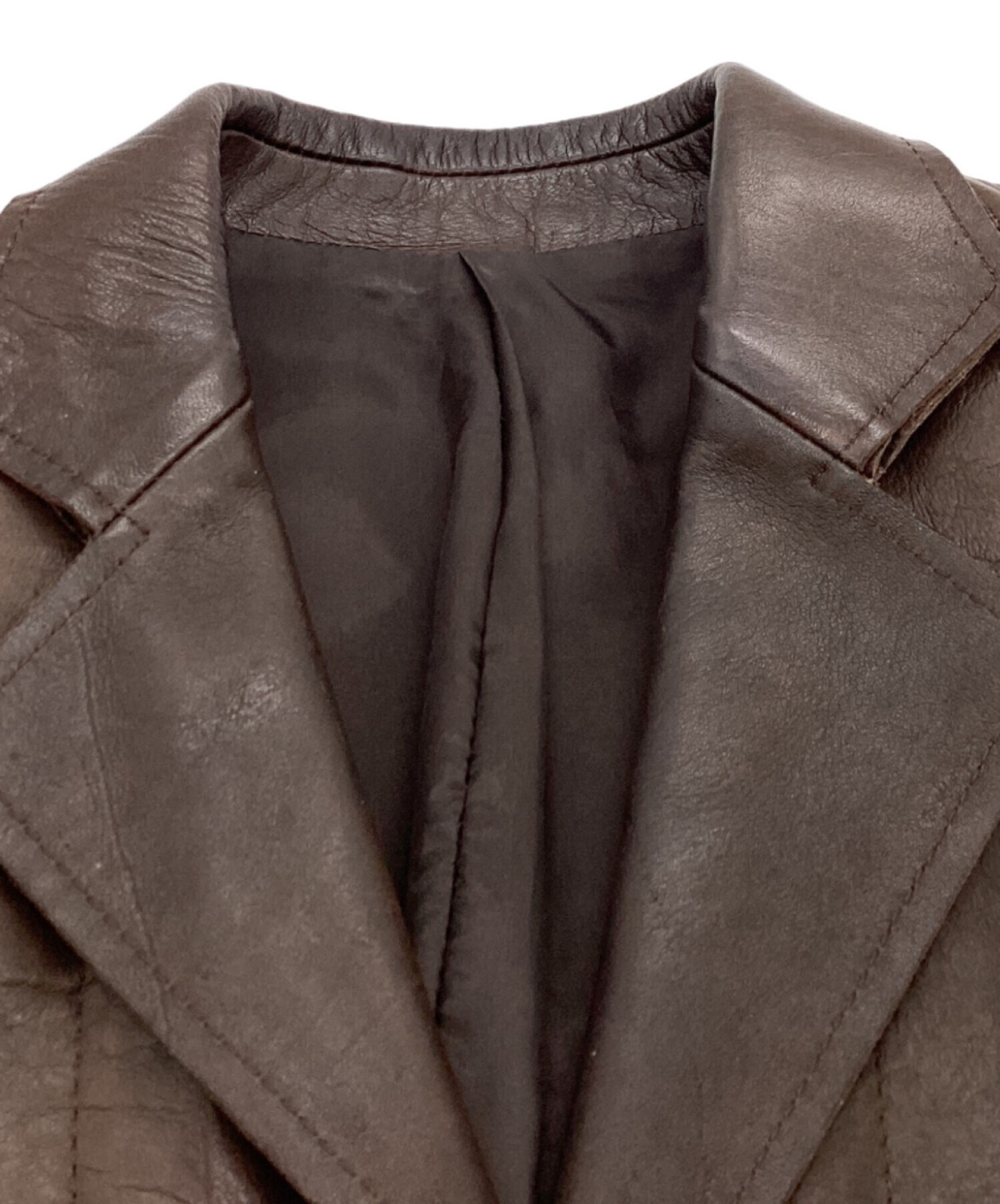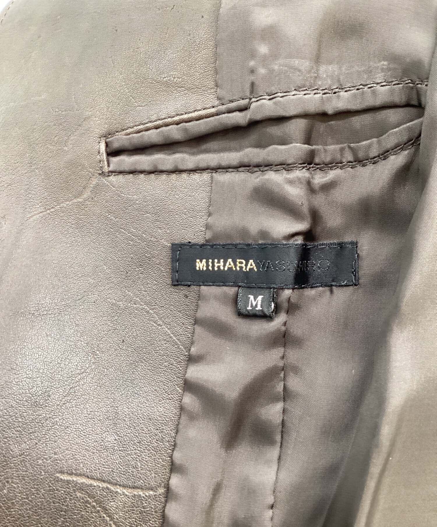 • MIHARA YASUHIRO(ミハラヤスヒロ)MIHARA YASUHIRO (ミハラヤスヒロ) レザーテーラードジャケット / カンガルー / 旧タグ ブラウン サイズ:Mの古着・服飾アイテム 表面スレ、色褪せ有